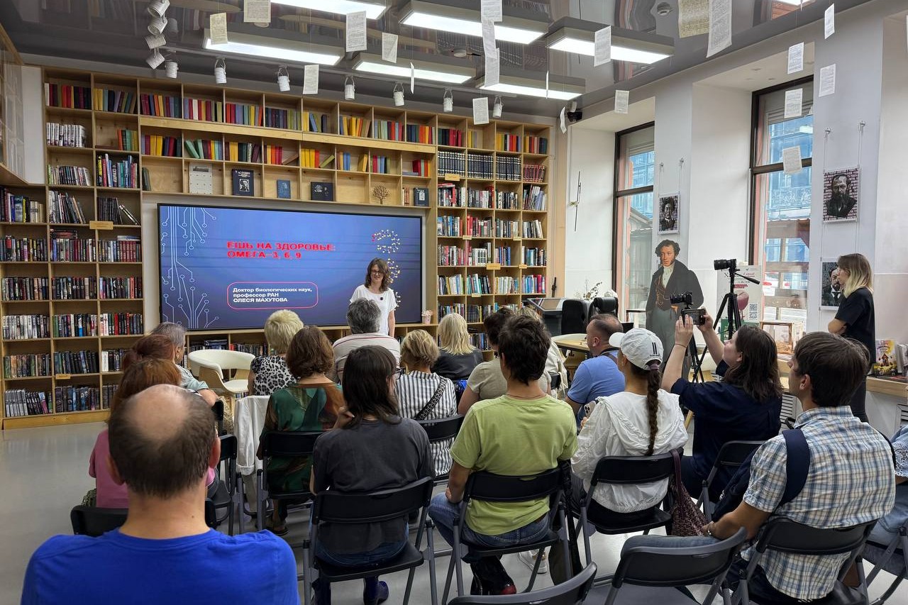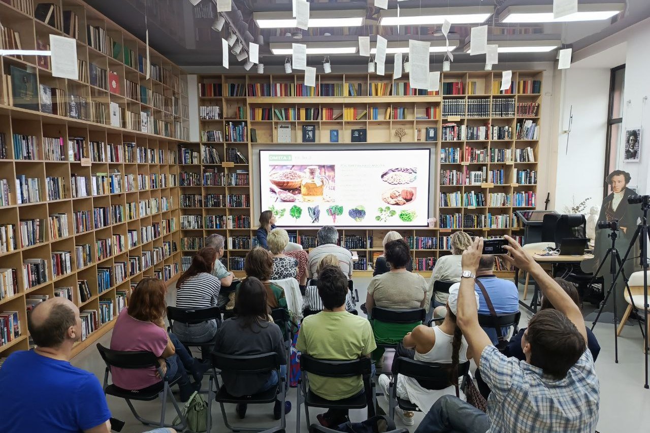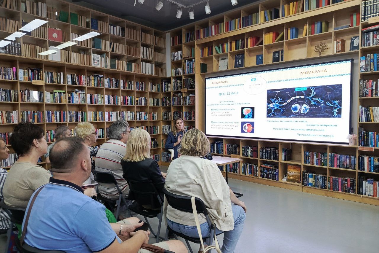 В библиотеке «БУК» состоялась 6 сентября первая встреча федерального научно-просветительского проекта «Курилка Гутенберга». Перед читателями выступила с лекцией «Ешь на здоровье: Омега-3, 6, 9» признанный эксперт в своей области – доктор биологических наук, профессор РАН, ведущий научный сотрудник Национального научного центра морской биологии им. А.В. Жирмунского ДВО РАН Олеся Махутова. Спикеру удалось мастерски трансформировать сложный научный материал в увлекательное и доступное повествование о том, как жирные кислоты управляют нашим здоровьем.