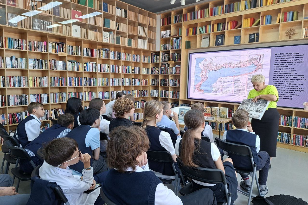 В рамках просветительской деятельности и работы по патриотическому воспитанию молодёжи сотрудники библиотеки № 1 им. А.С. Пушкина (ул. Светланская, 55) подготовили и провели 11 сентября для учащихся 7 класса СОШ №13 интерактивную краеведческую программу «165 шагов по Владивостоку», которая превратила обычный учебный день в увлекательную экспедицию по страницам истории родного города.