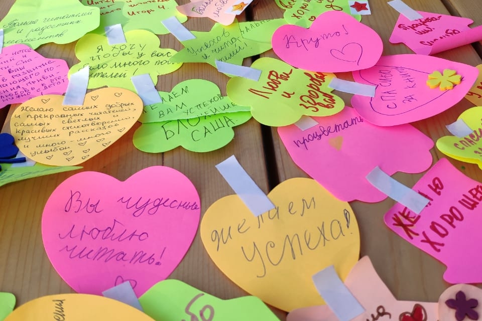 Большой ажиотаж и приз зрительских симпатий имела зона мастер-классов, организованных сотрудниками Владивостокской библиотечной системы. Здесь в комфортной игровой атмосфере можно было сделать своими руками народную книжку-малышку и яркую закладку для книг. Ребят и родителей ждала яркая карта библиотек, больших размеров, на ней были нанесены в виде островов номера всех 22 библиотек библиотечной системы Владивостока. Ребята писали теплые пожелания своей библиотеке, находили ее на карте и прикрепляли свои послания в виде сердечек, звезд и других веселых изображений. Самые добрые слова признательности и лучшие пожелания написали дети на бумажных сердечках.