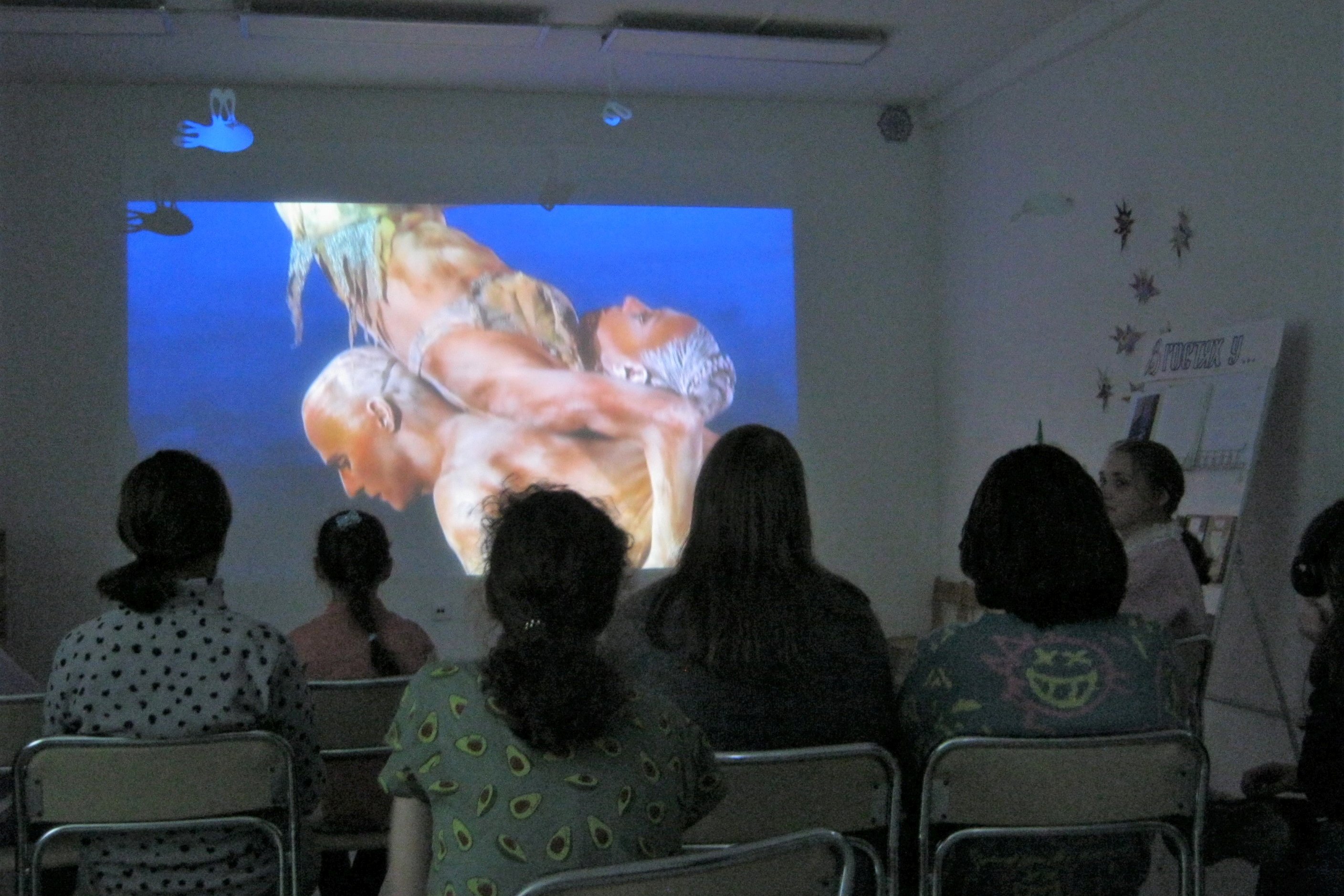 С графикой этого разностороннего автора школьники познакомились еще несколькими месяцами ранее, в рамках выставки набросков «Пять минут». Не смотря на рекомендации педагога своим юным студийцам уделить пристальное внимание классическому балету в фотографиях, девушки охотнее обсуждали контемпорари дэнс, который посмотрели на экране, после знакомства с выставкой. Это был танец под танго Querer, исполненное Франческой Ганьон на шоу Midnight sun Цирка дю Солей. Кому-то из девочек помладше сложно было согласиться с тем, что резкие, стремительные, угловатые движения танцоров под танго — это красиво или наоборот, медленное выступление дрожащих от мучительного напряжения мускулистых циркачей — это тоже красиво. Это не классический балет, где порхают, как перышки, балерины и все плавно, округло и без видимых усилий. Зато всех потом примирил смешной анимационный фильм Юлии Оккер про брутального волка в розовой пачке.