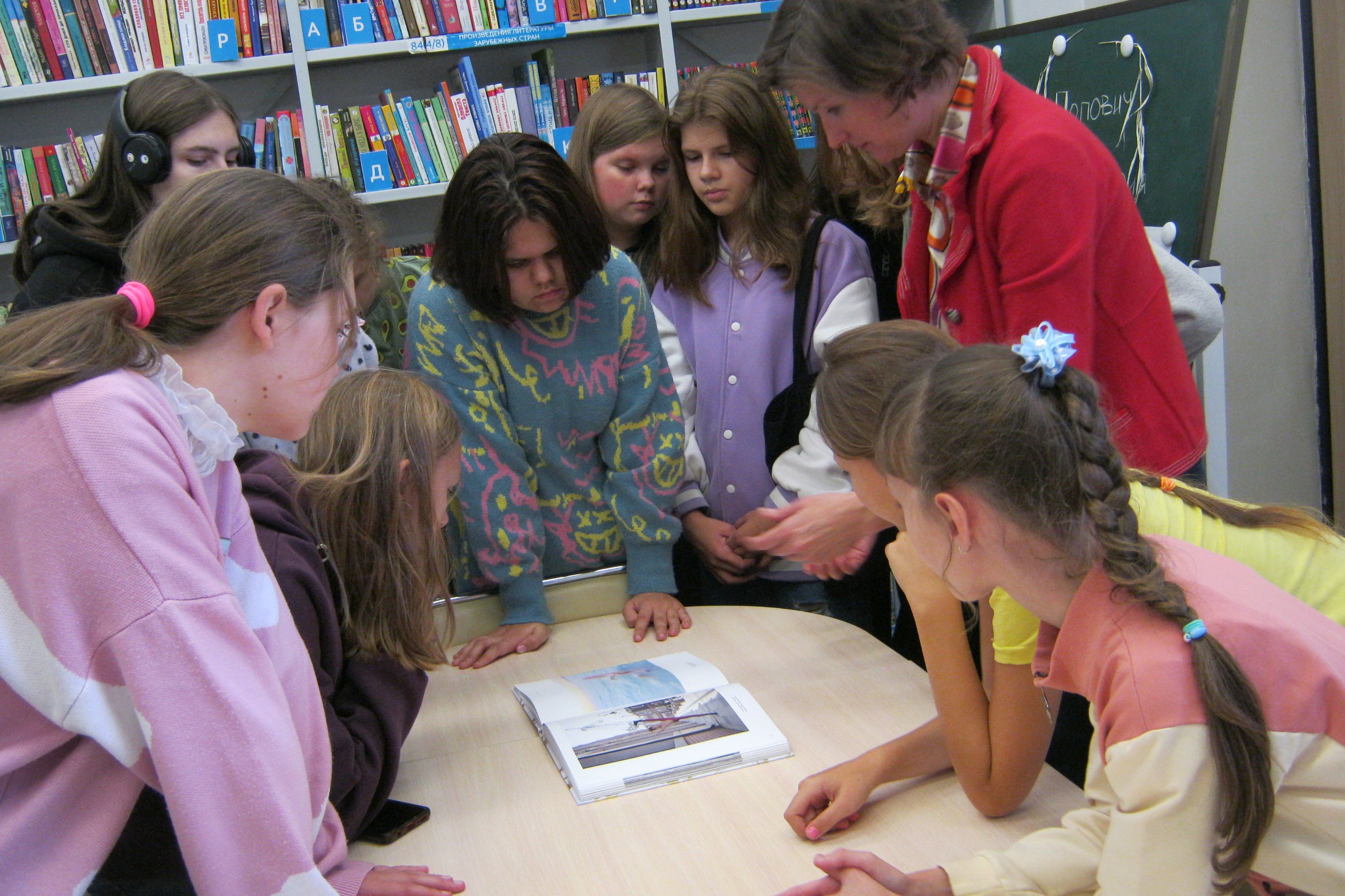 Каждую новую выставку в библиотеке традиционно посещает группа подростков из художественной студии центра развития творчества детства и юношества. Педагог студии отпускает в этот день девчонок пораньше с занятий, обычно это происходит в конце учебной недели, для того, чтобы они устроили себе культурную пятницу.