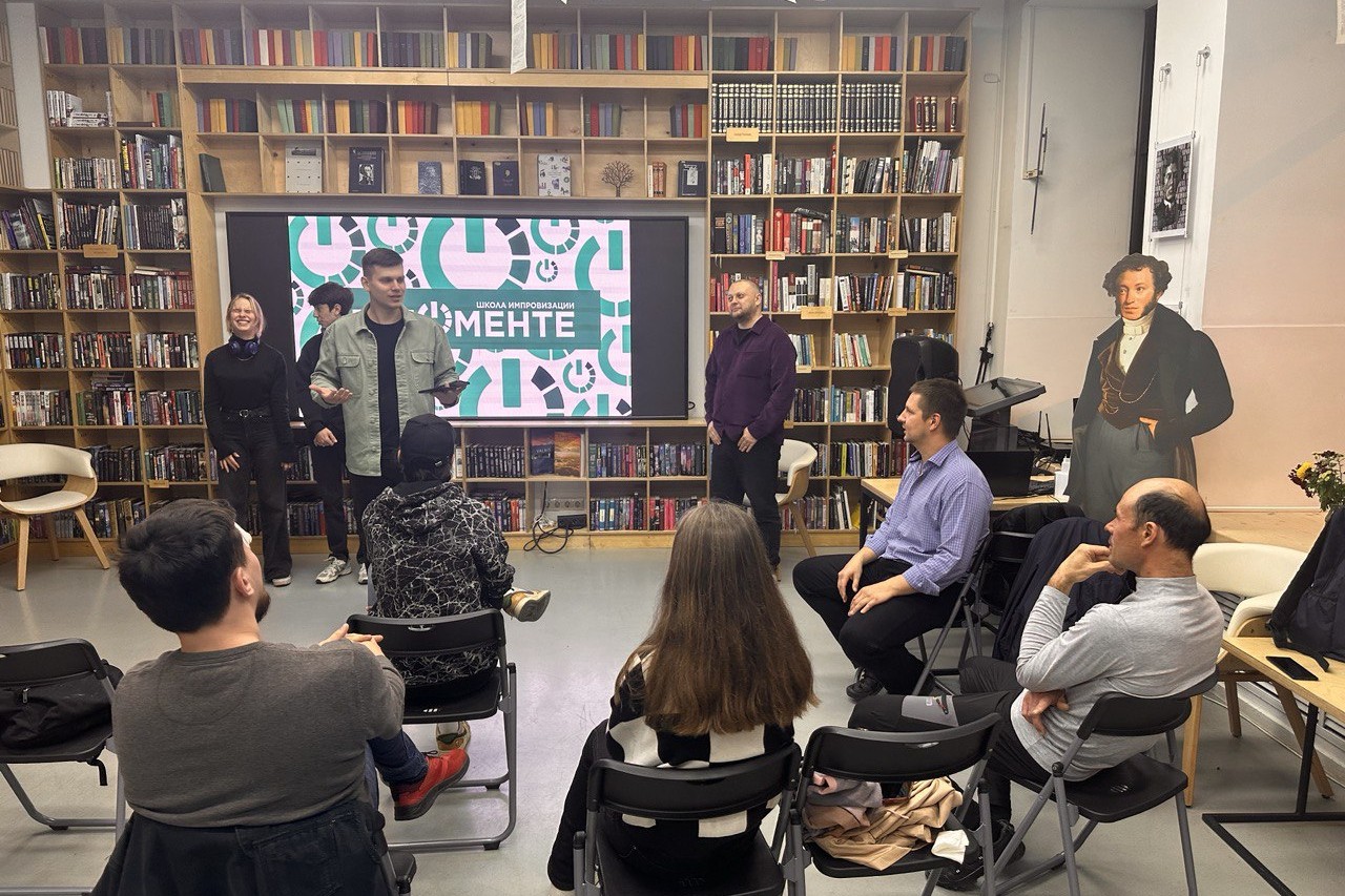 В библиотеке «БУК» завершающий день октября прошел под знаком смеха и спонтанности, участники проекта комедийной импровизации «В моменте» представили читателям мастер-класс, где юмор рождался в реальном времени, без предварительных репетиций.