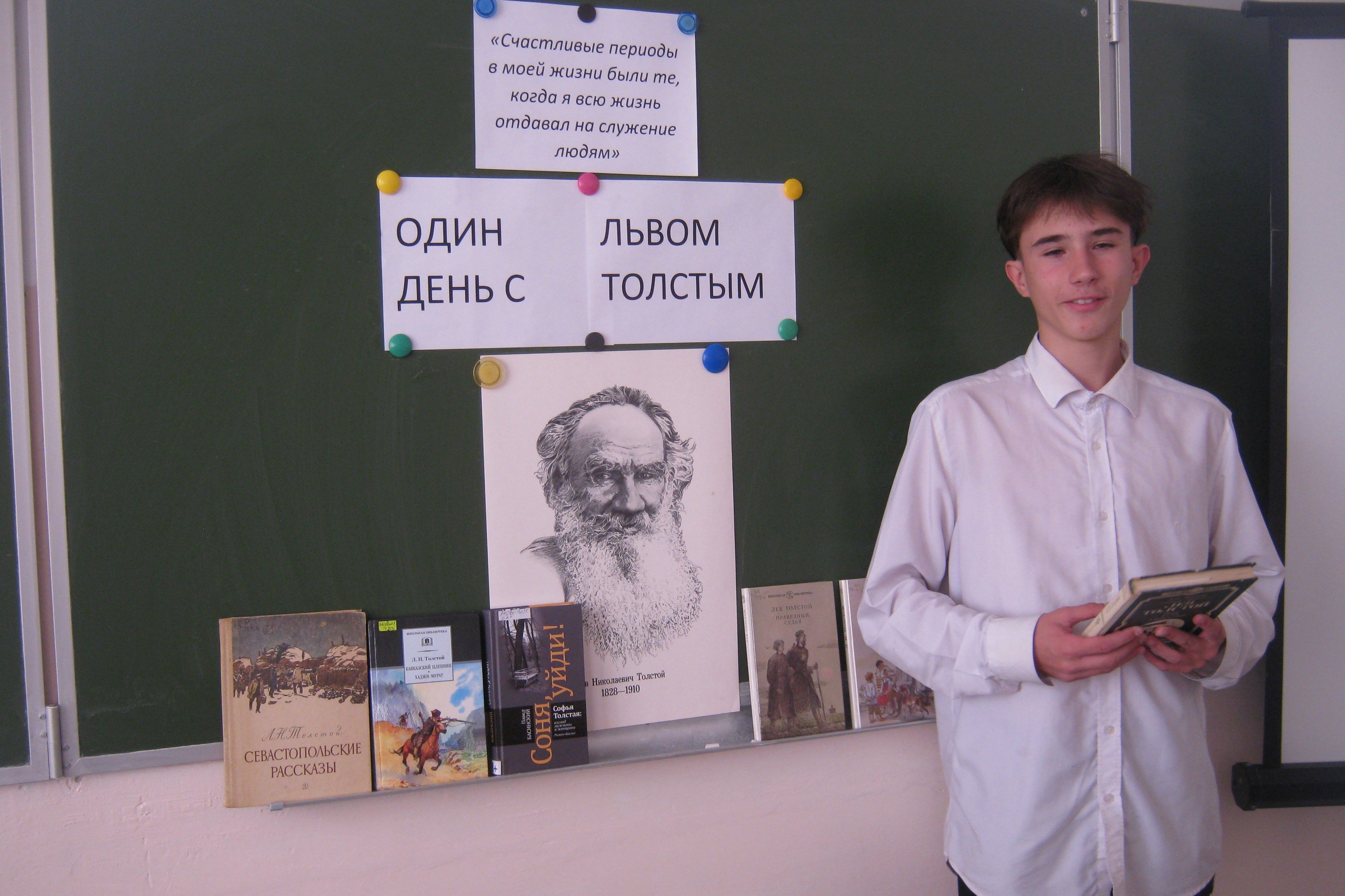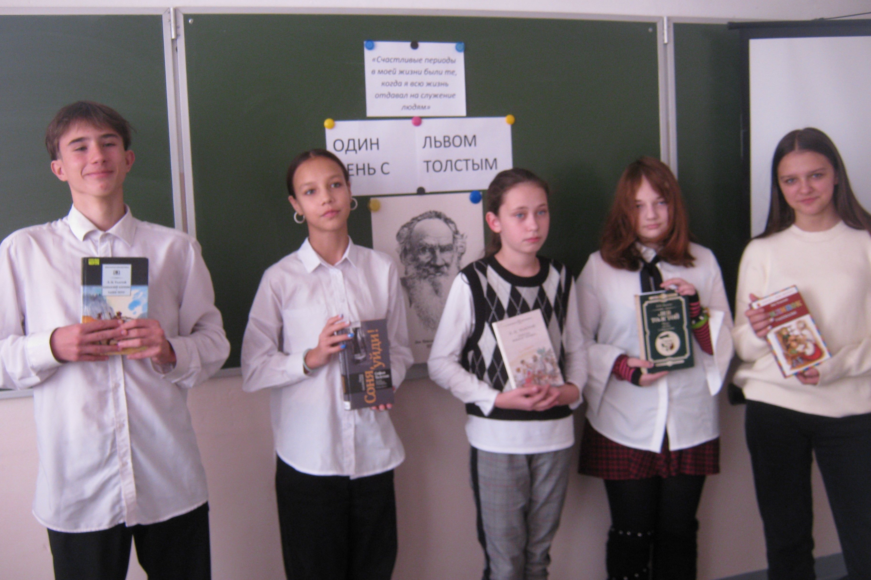 Библиотека № 15 провела в конце ноября урок литературы «Один день с Львом Толстым» для учащихся 7 «Б» класса ЦО «Вектор», школа № 54.