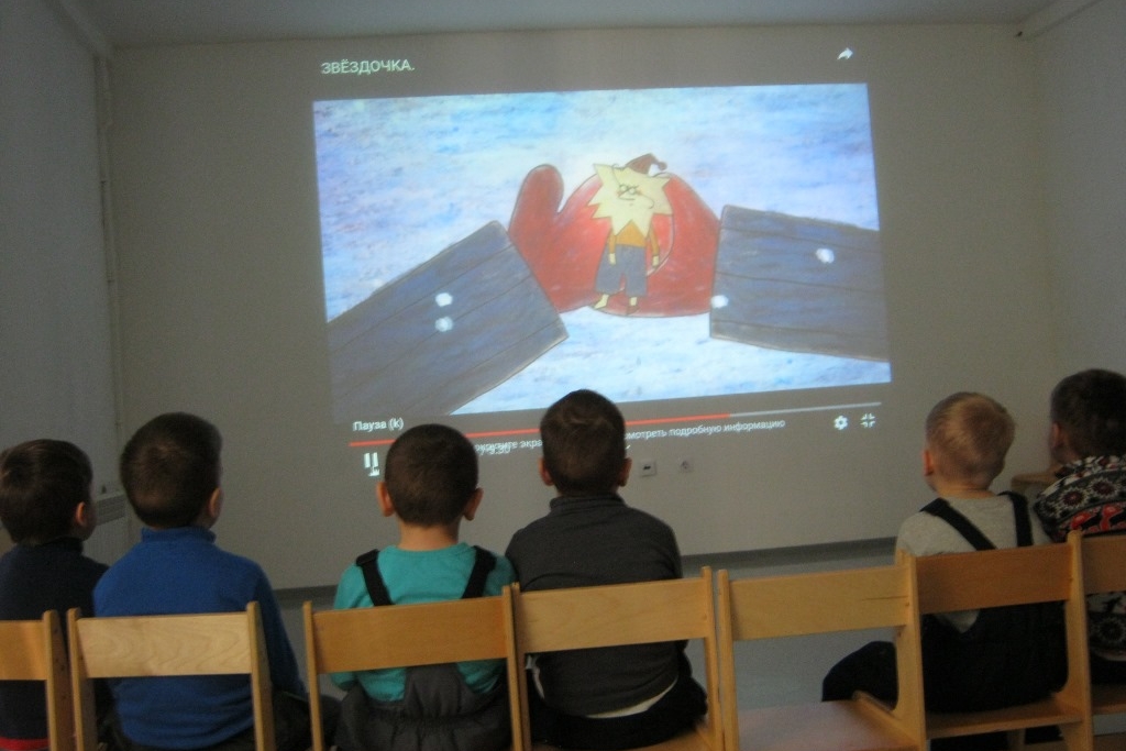 В кинозале дети посмотрели мультфильм «Звездочка» Светланы Андриановой, про малютку-звезду, упавшую с неба, которую тоже все хотели присвоить себе, как прелестную Дюймовочку.