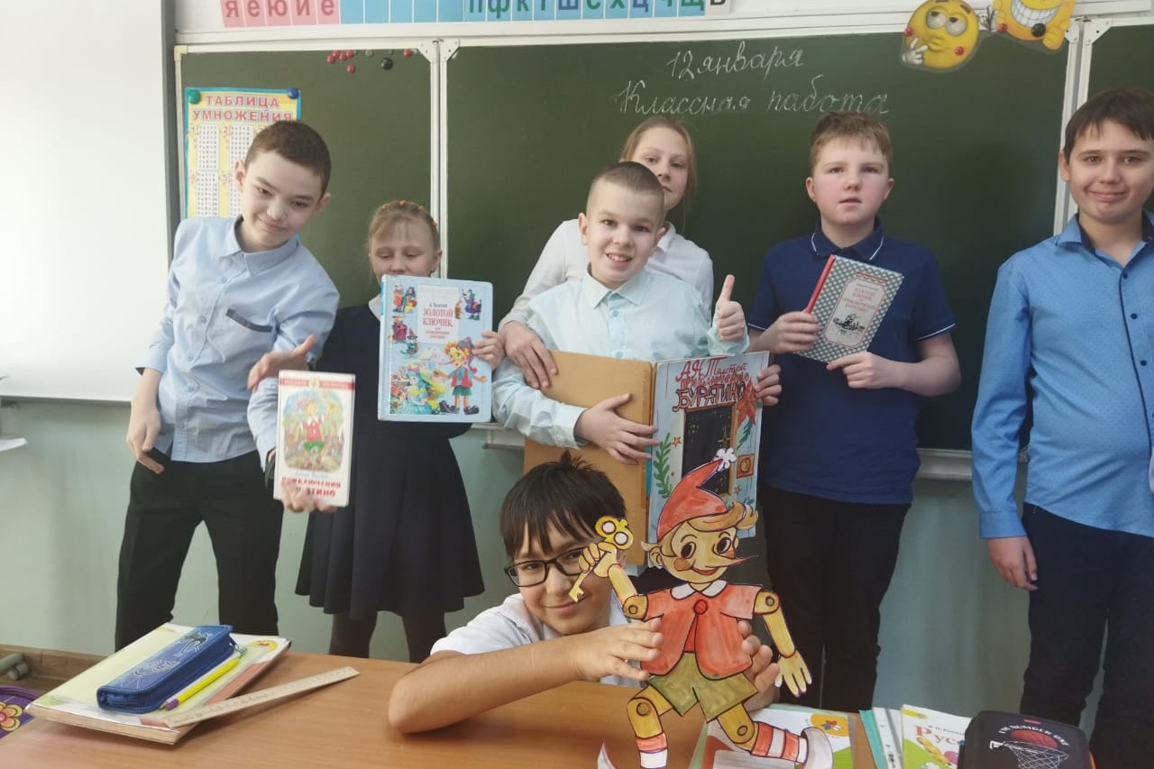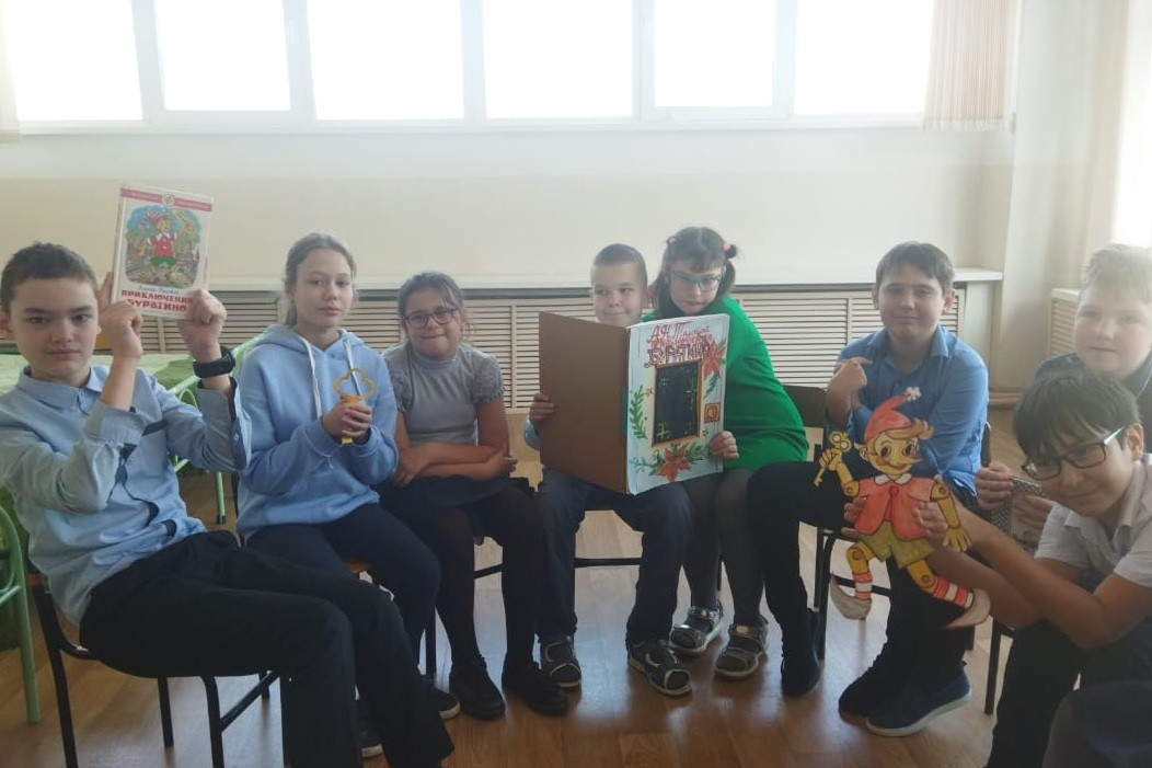 В рамках программы «Литературные даты» детская библиотека № 5 провела 10 января для ребят из коррекционной школы познавательный урок – путешествие по сказкам «Наш любимый Буратино», дети с интересом приняли участие в нём. В ходе мероприятия ребята познакомились с его произведениями, слушая и читая отрывки из сборников. Но главной частью встречи со школьниками стала та самая повесть – сказка про весёлого и озорного Буратино. Все персонажи «Приключения Буратино или Золотой ключик» — и главные, и второстепенные – незабываемы. Многие герои вошли в нашу жизнь как образы собирательные. Вот и для детей игра по данной сказке получилась очень увлекательной. Учащиеся отгадывали загадки по книге, вспоминали любимых героев сказки, посмотрели отрывок из знаменитого мультфильма, а также встретились с главным героем – самим Буратино – только не деревянным мальчиком – бумажным. Ребята вместе с руководителями сделали «золотой ключик», раскрасили иллюстрации к самодельной книжке и были вовлечены в беседу с библиотекарем. Невероятная история с множеством приключений радует читателей до сих пор. А главное – показывает нам, как важно преодолеть трудности, дать отпор неудачам и найти верных друзей, которые готовы вместе достигать поставленных целей.