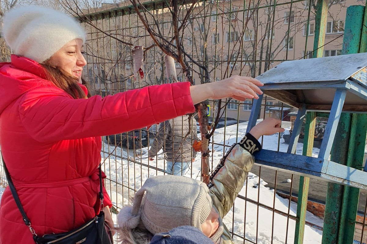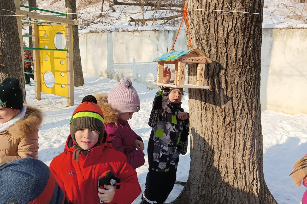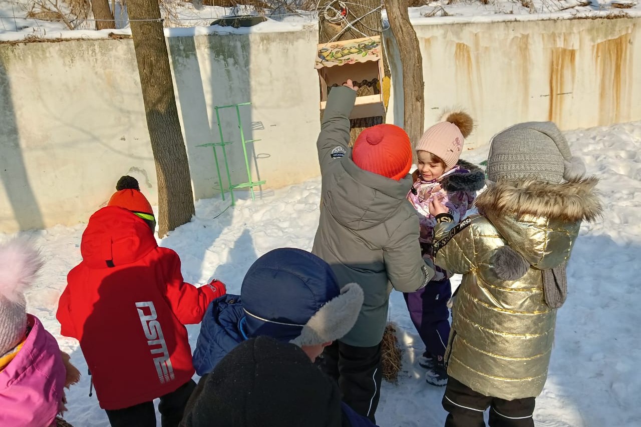 15 января в России отмечается День зимующих птиц. Накануне этой даты, в тёплый солнечный день сотрудники библиотеки № 4 провели игровое мероприятие на свежем воздухе вместе с воспитанниками детского сада № 145.