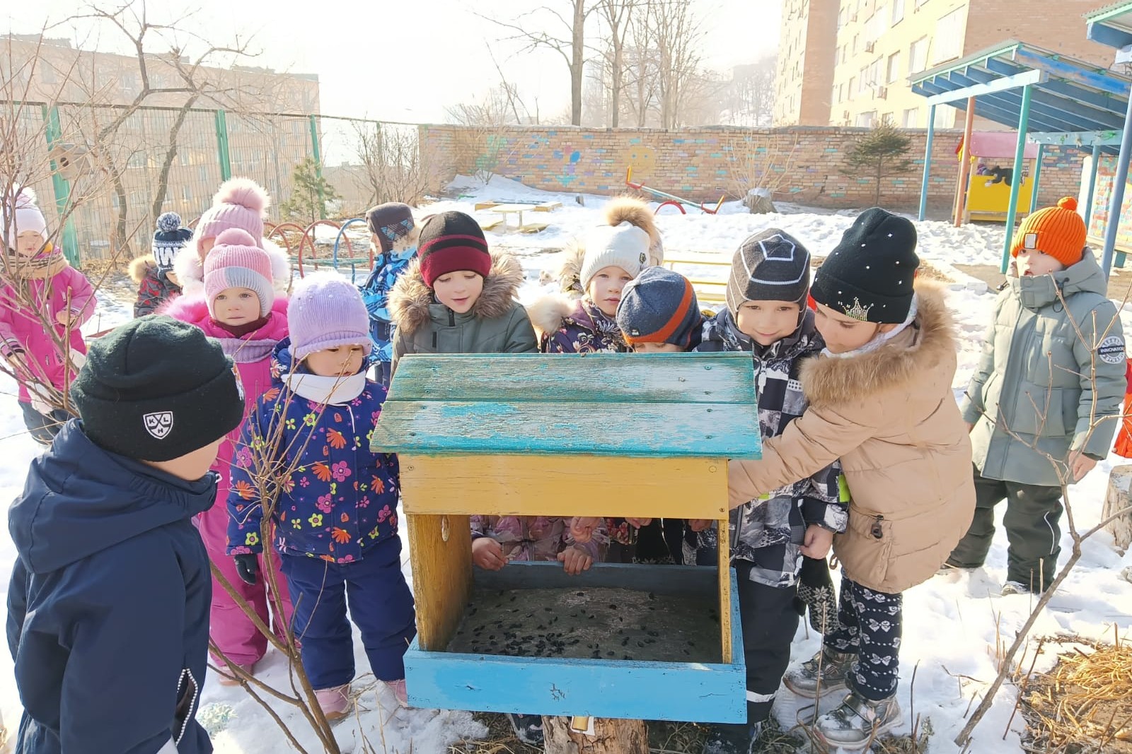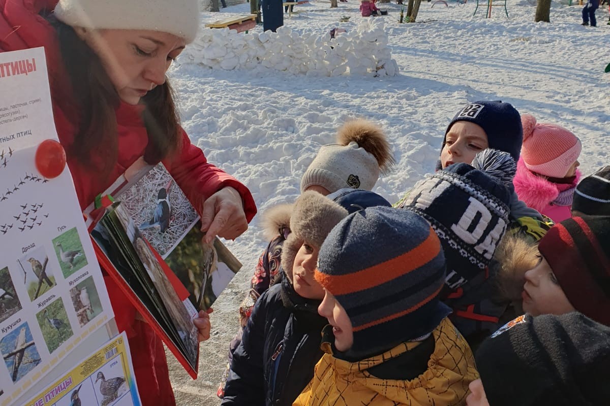 15 января в России отмечается День зимующих птиц. Накануне этой даты, в тёплый солнечный день сотрудники библиотеки № 4 провели игровое мероприятие на свежем воздухе вместе с воспитанниками детского сада № 145.