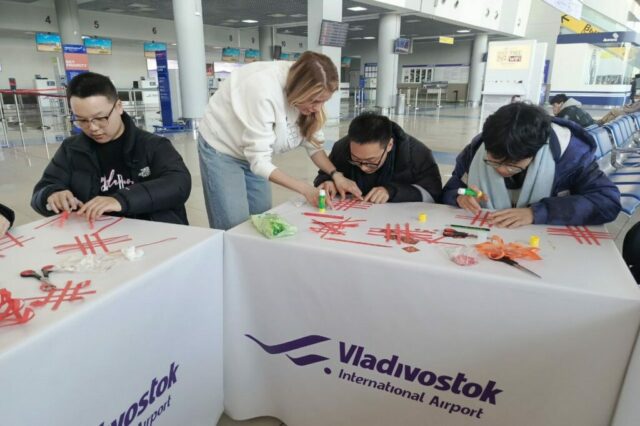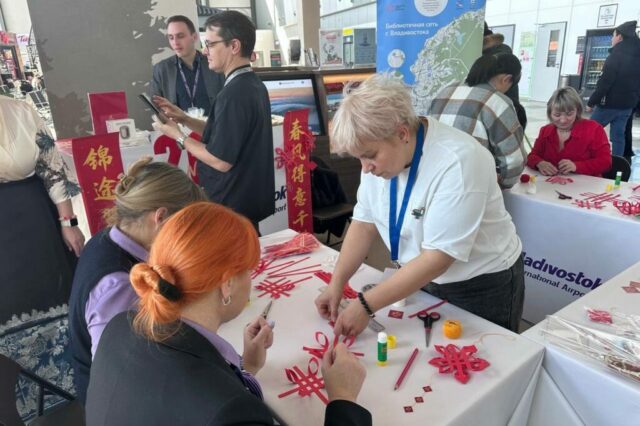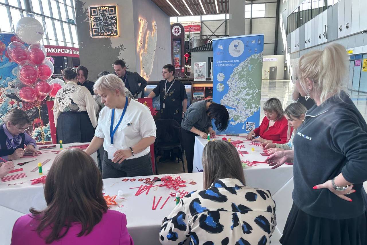 Первый аккорд праздничной программы прозвучал 3 февраля в аэропорту Владивостока (Международный аэропорт Владивосток имени В. К. Арсеньева). Сотрудники библиотеки БУК подготовили и провели открытый мастер-класс для пассажиров, сотрудников аэропорта и представителей китайских авиакомпаний. Участники своими руками создавали традиционные обереги из красной бумаги, а также узнали, почему именно этот цвет и ажурные узоры считаются в Китае главными защитниками дома. Библиотекари объяснили, что такие украшения, согласно поверьям, создают барьер от злых сил, привлекают свет и удачу, освещая путь в новый год. Каждый унёс с собой не просто поделку, а заряженный смыслом талисман, узнав, какие иероглифы привлекают счастье и богатство и как правильно их размещать.