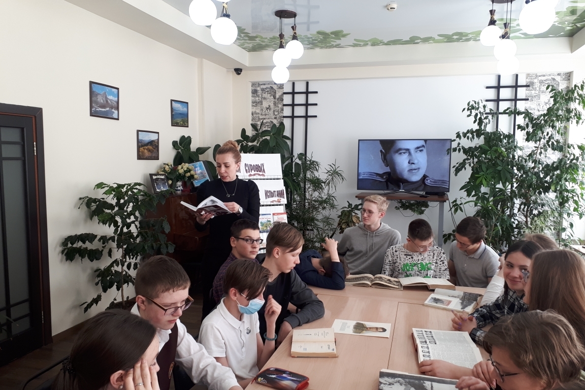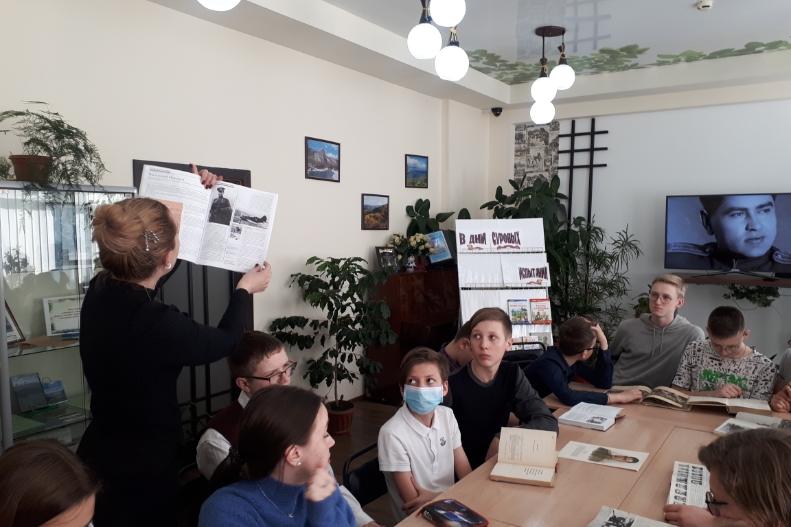 11 марта восьмиклассники школы № 57 в библиотеке им. И.У. Басаргина рассуждали о легендарном советском военном летчике, Герое Советского Союза Алексее Петровиче Маресьева, прототипе героя знаменитой «Повести о настоящем человеке» Бориса Полевого.