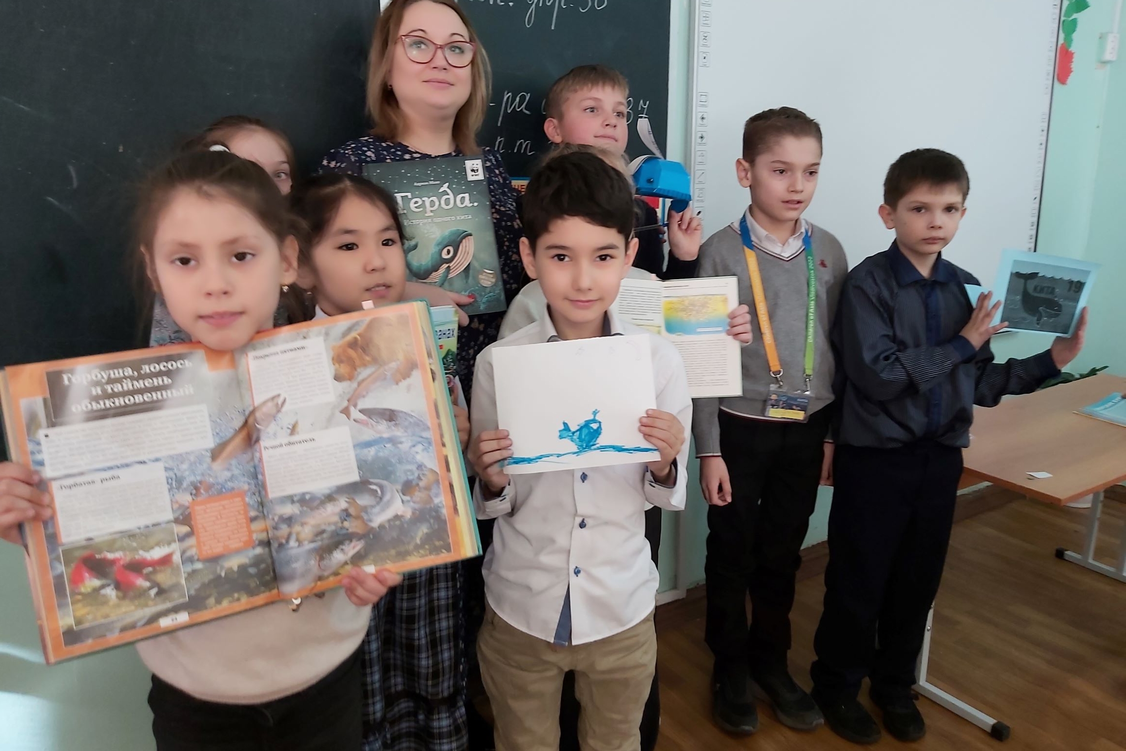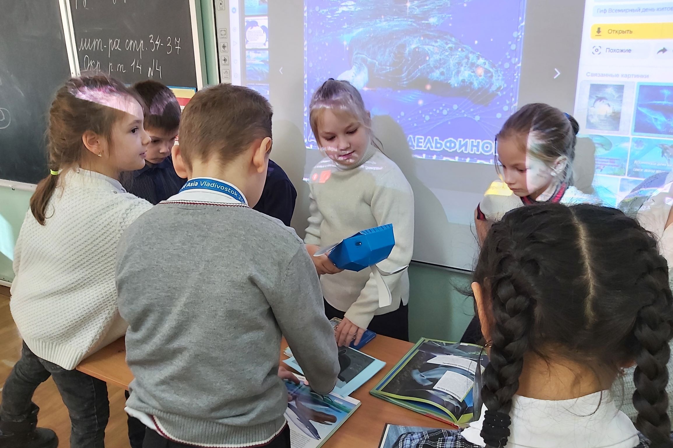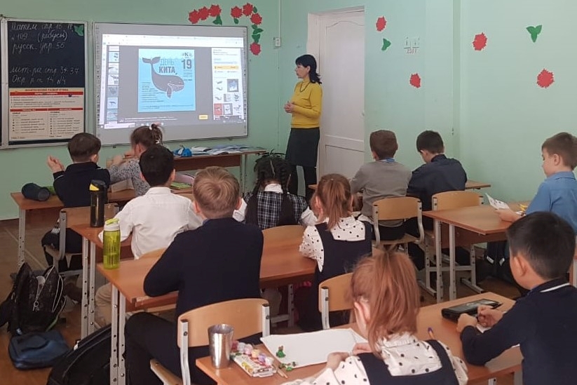 Познавательный урок организовали сотрудники библиотеки № 17 для учеников 2 «Б» класса школы № 40. Мероприятие приурочено к Дню китов (19 февраля).
