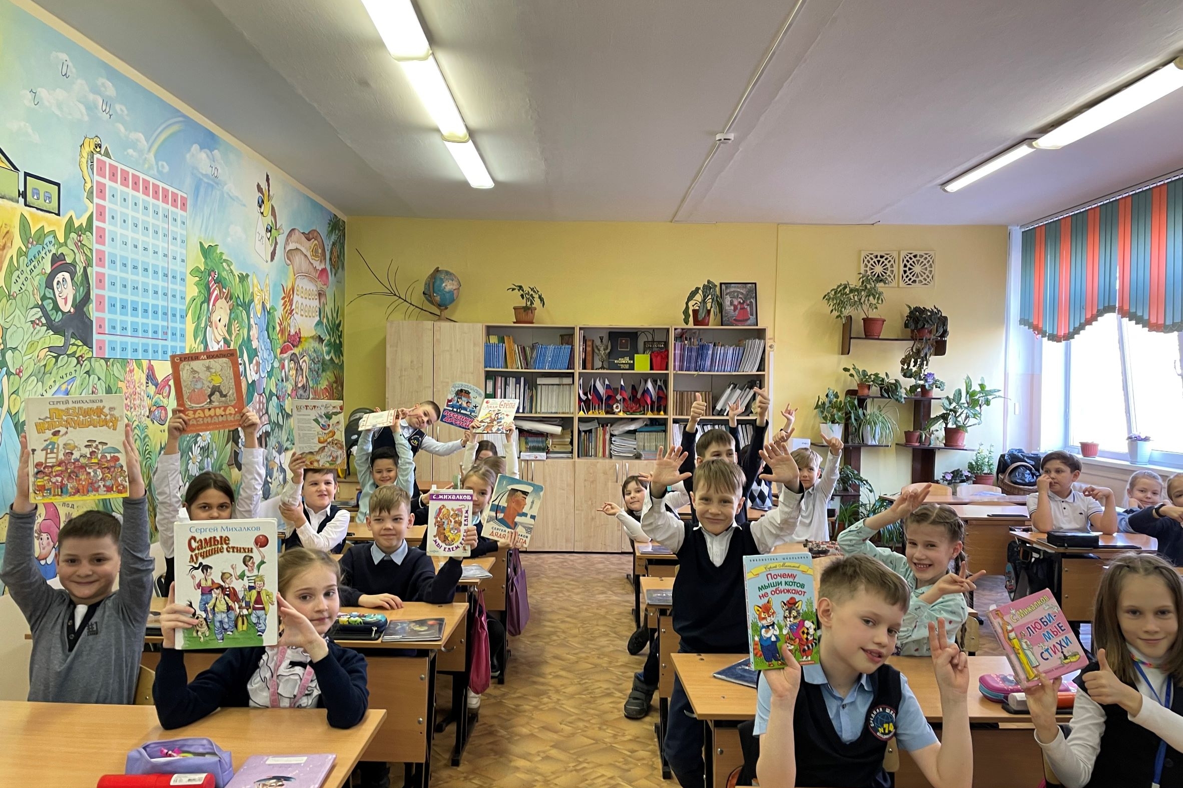 2 марта детская библиотека № 7 организовала литературный час для 2 «Д» класса школы № 74 и познакомили с творчеством замечательного детского писателя. Сотрудники библиотеки в ходе мероприятия разыграли библиотечные фанты, когда надо было по отрывку узнать и продолжить стихотворение Сергея Михалкова. Заодно дети услышали много неизвестных для них стихотворений. Поговорили о сказках и баснях, которые он написал и теперь знают, почему мыши котов не обижают, а зайца называют симулянтом, что случилось с двумя баранами на крутой тропинке и вспомнили трех поросят.