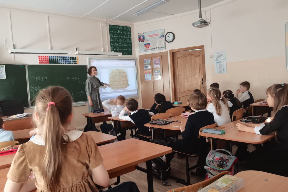 Первоклассников завораживают торжественные интерьеры старинных библиотек, огромные фолианты, «посаженные на цепь», роскошные переплеты в драгоценных камнях. На сколько эти сокровища отличаются от легких, строгих учебников, которые лежат на их партах! Пройти долгий путь человечества за 40 минут школьного урока сложно, но ученики 1б класса из 17 школы успели еще и побывать на месте древних изобретателей клинописи – шумеров. На легких табличках из соленого теста, имитирующих глиняные таблицы, они написали свои имена. Кто знает, возможно, эти таблички найдут после нас через 1000 лет, и прочитают надписи археологи будущего.