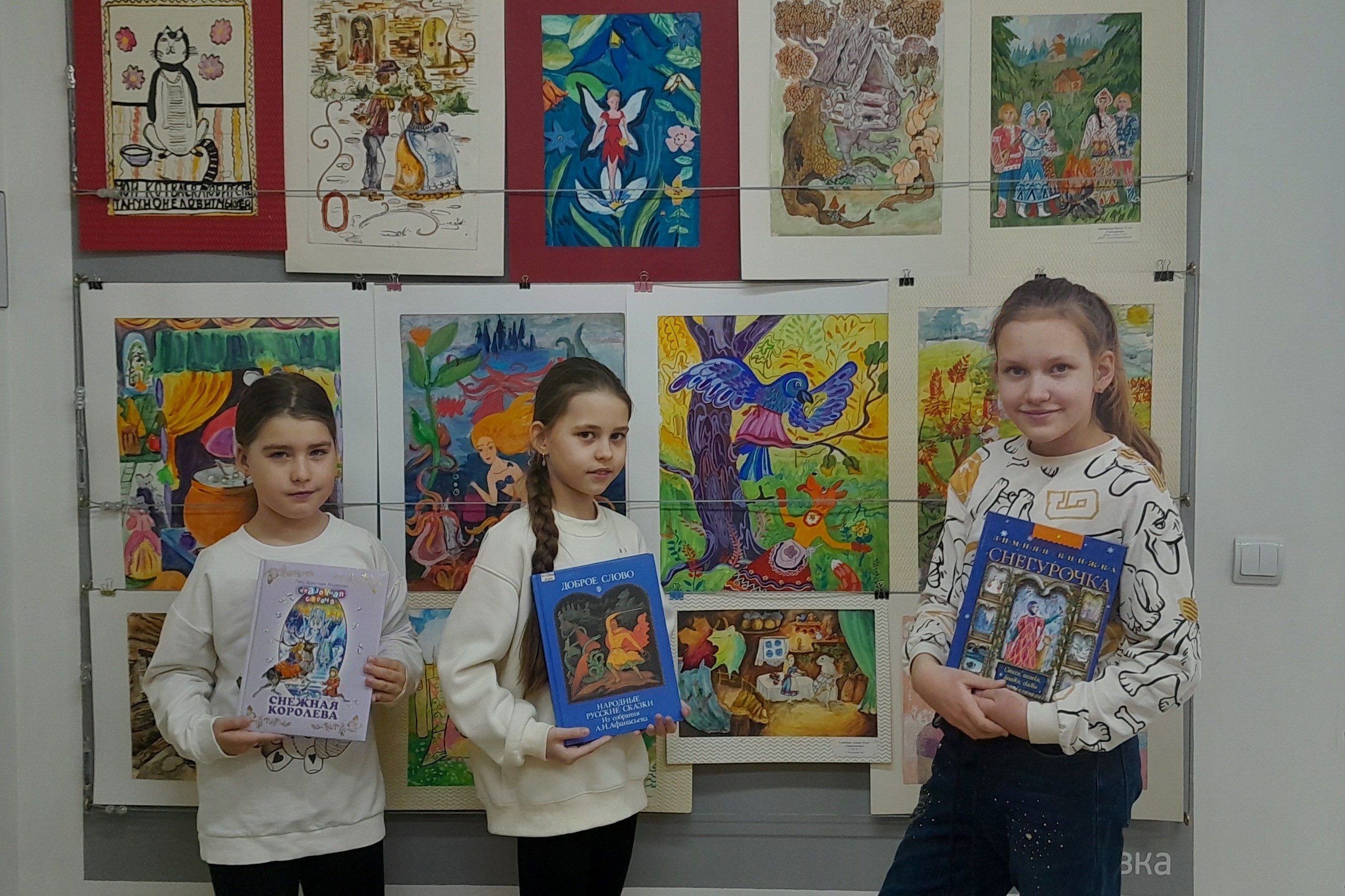 На открытии выставки ребята вспоминали любимые сказки, с удовольствием обсуждали каких героев они знают, отвечали на вопросы литературной викторины, а также взяли домой книги авторов любимых сказочников. Выставка детских рисунков будет работать до конца апреля.