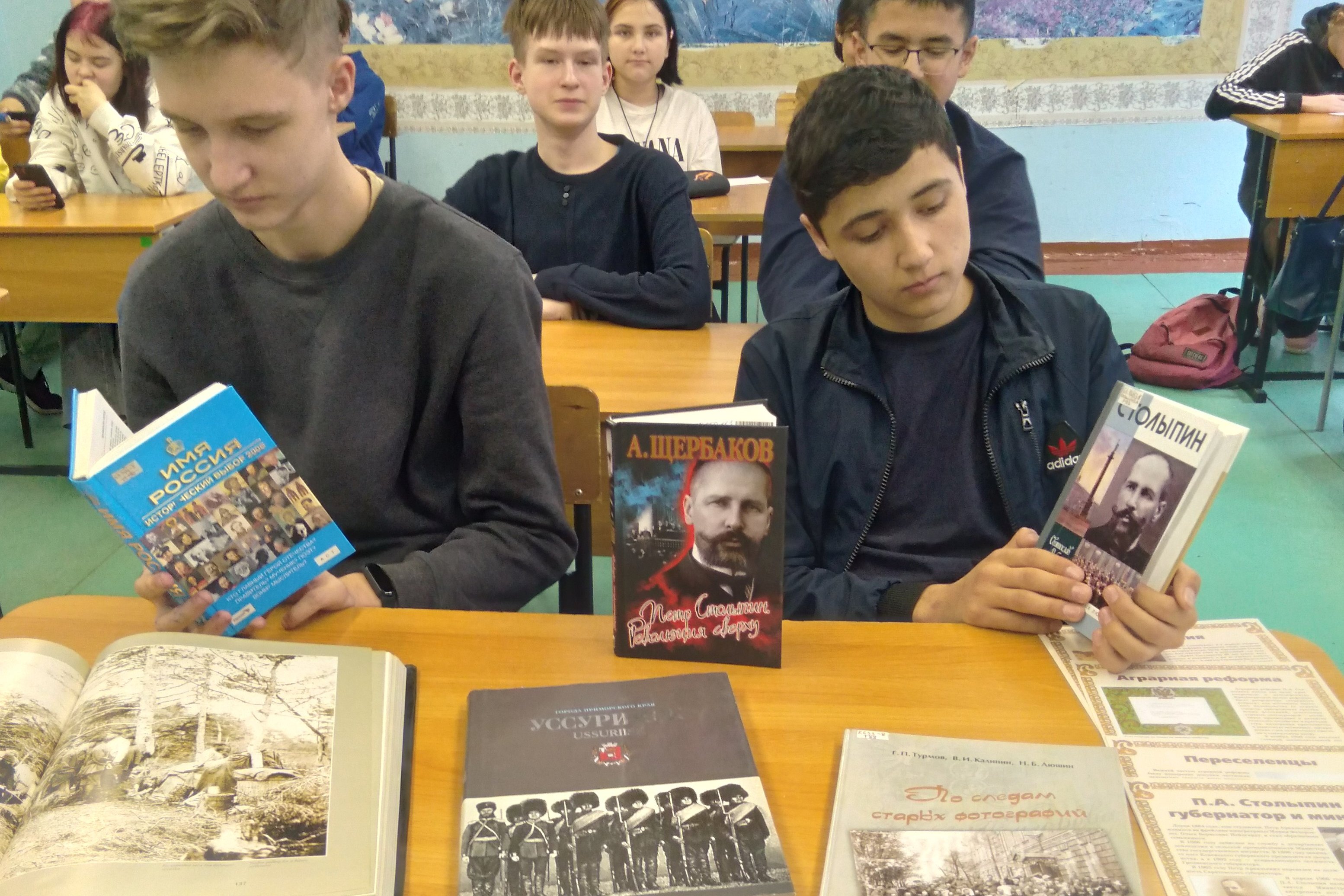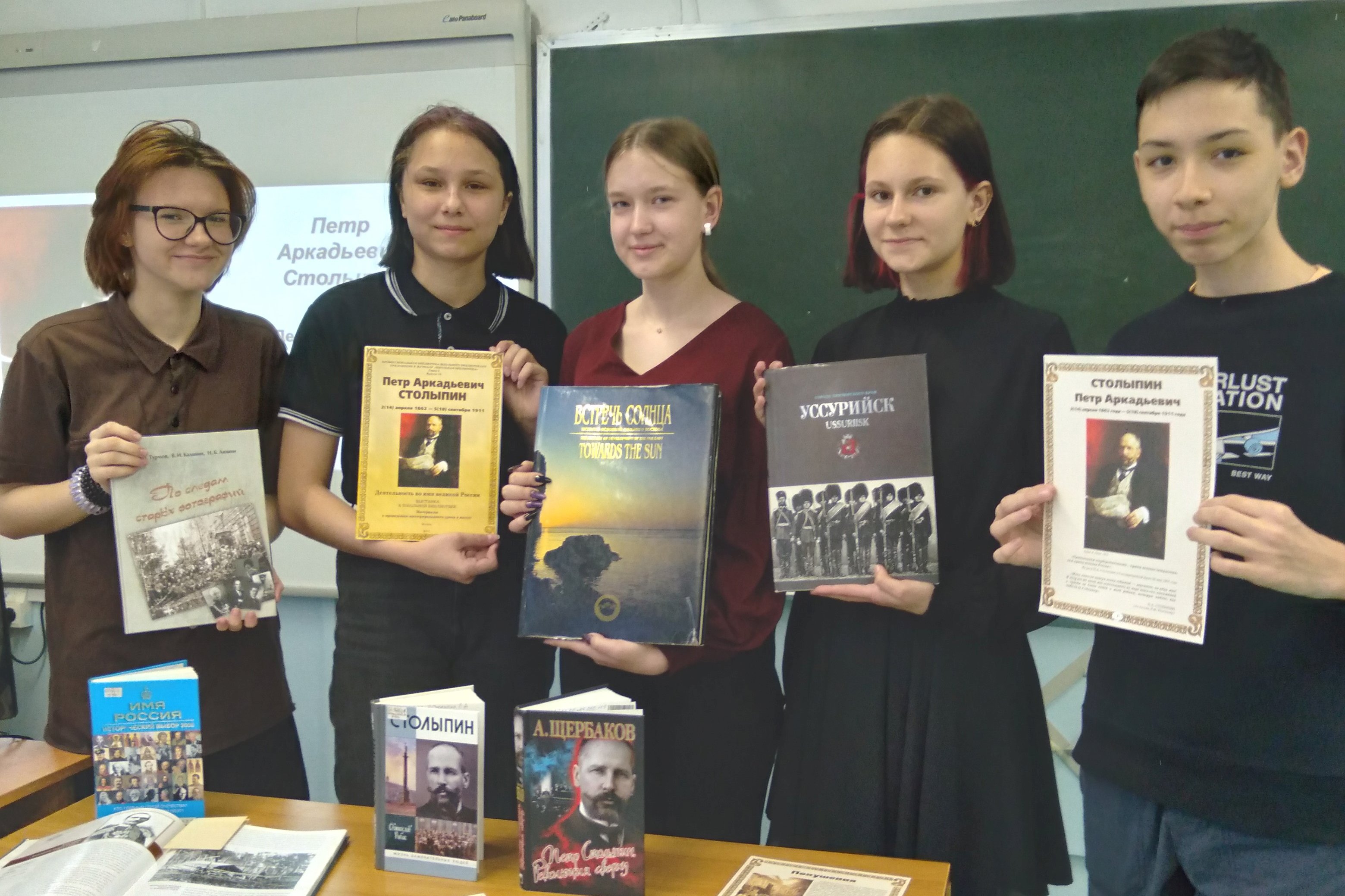 Знакомя ребят с деятельность П.А. Столыпина, говорили о его деятельности как реформатора, по чьей инициативе было начато строительство участка Транссибирской железной дороги и закрепление населения на тихоокеанских землях, тем самым увеличивая территорию России за счет Дальневосточных земель. О сущности аграрной реформы и ее последствиях, о том, что Столыпин верил в стратегическую значимость тихоокеанского побережья: «Отдаленная наша суровая окраина богата пушниной, богата громадными пространствами земли, годной для культуры – доказывал он в полемических схватках с думцами. – И при таких обстоятельствах, при наличии государства, густонаселенного, соседнего нам, эта окраина не останется пустынной. В нее прососется чужестранец, если раньше не придет туда русский… Если мы будем продолжать спать летаргическим сном, то край этот будет пропитан чужими соками, и когда мы проснемся, может быть, он окажется русским только по названию…».