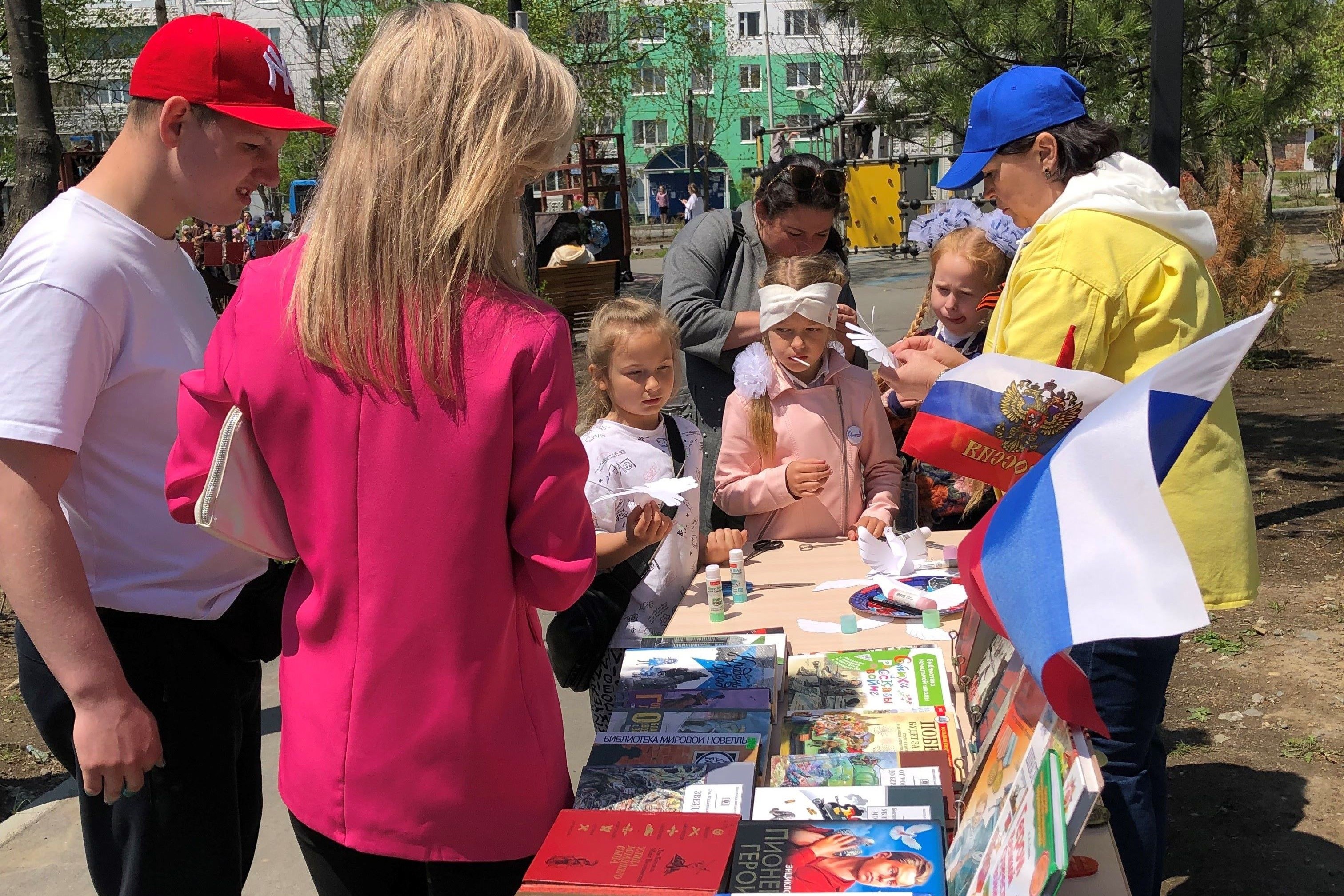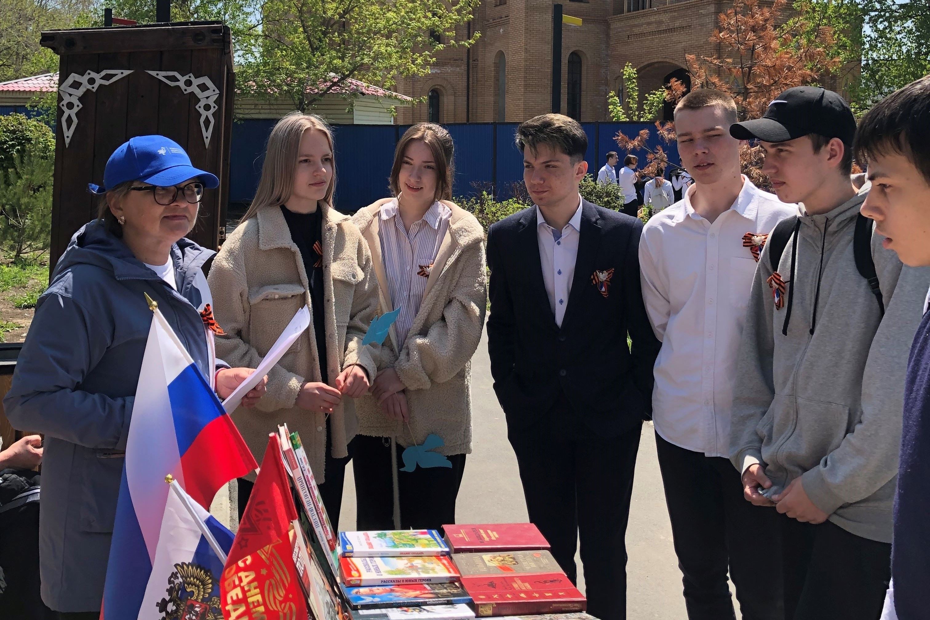 Библиотека №2 приняла активное участие в акции. На открытой площадке была организована книжная выставка, на которой были представлены книги о войне и произведения писателей-фронтовиков. Желающие смогли поучаствовать в викторине на знание исторических фактов Великой Отечественной войны. Школьники прочитали полюбившиеся стихи о войне.