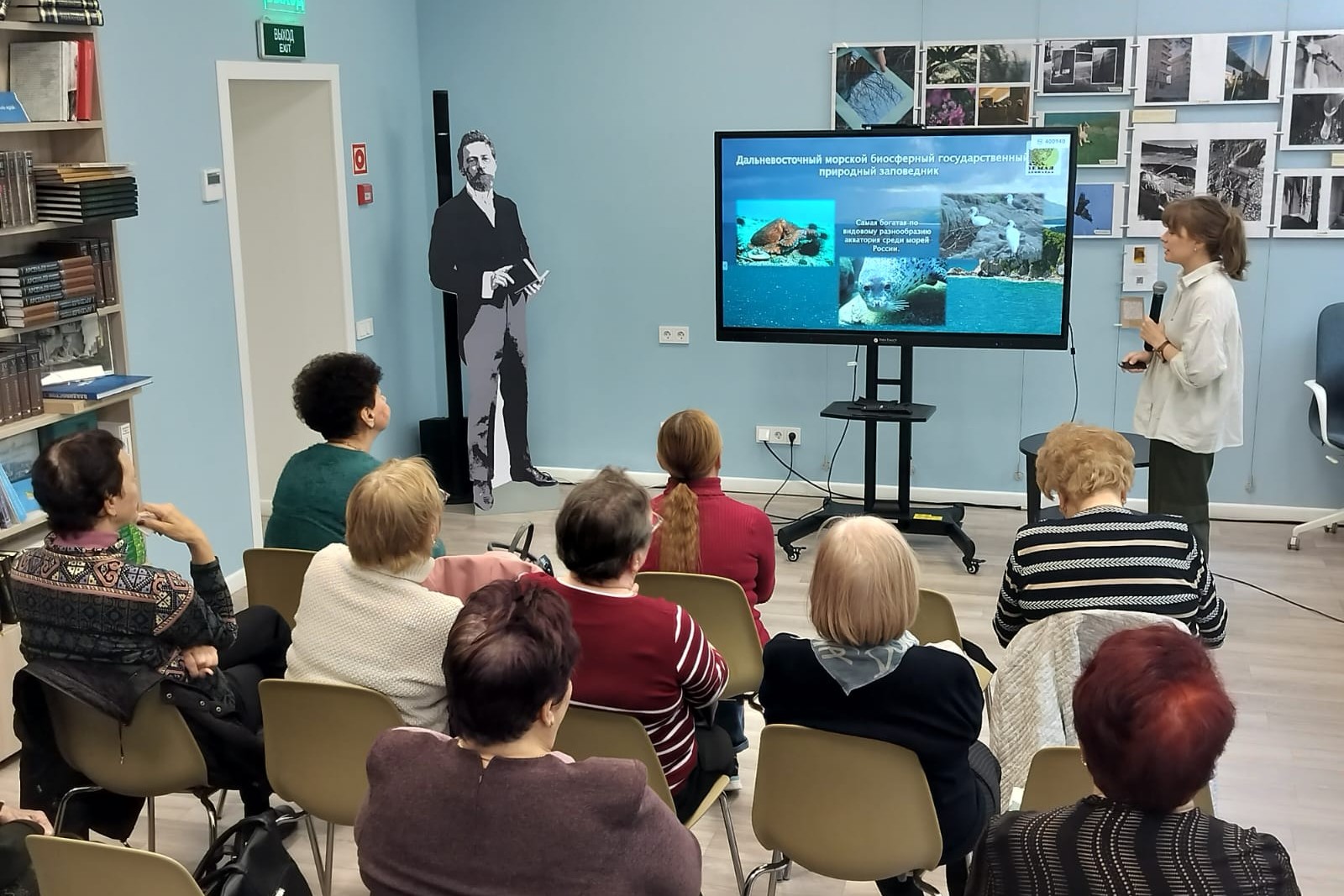 В Центральной библиотеке им. А. Чехова, модернизированной в рамках национального проекта «Культура», 5 июня прошла встреча читателей библиотеки с ведущим специалистом национального парка «Земля леопарда» Анастасией Шиман. Заповедные уроки «Земля леопарда» проводит регулярно в рамках работы по экологическому просвещению населения, и в библиотеке представители национального парка уже неоднократно встречались с читателями, юными и взрослыми.