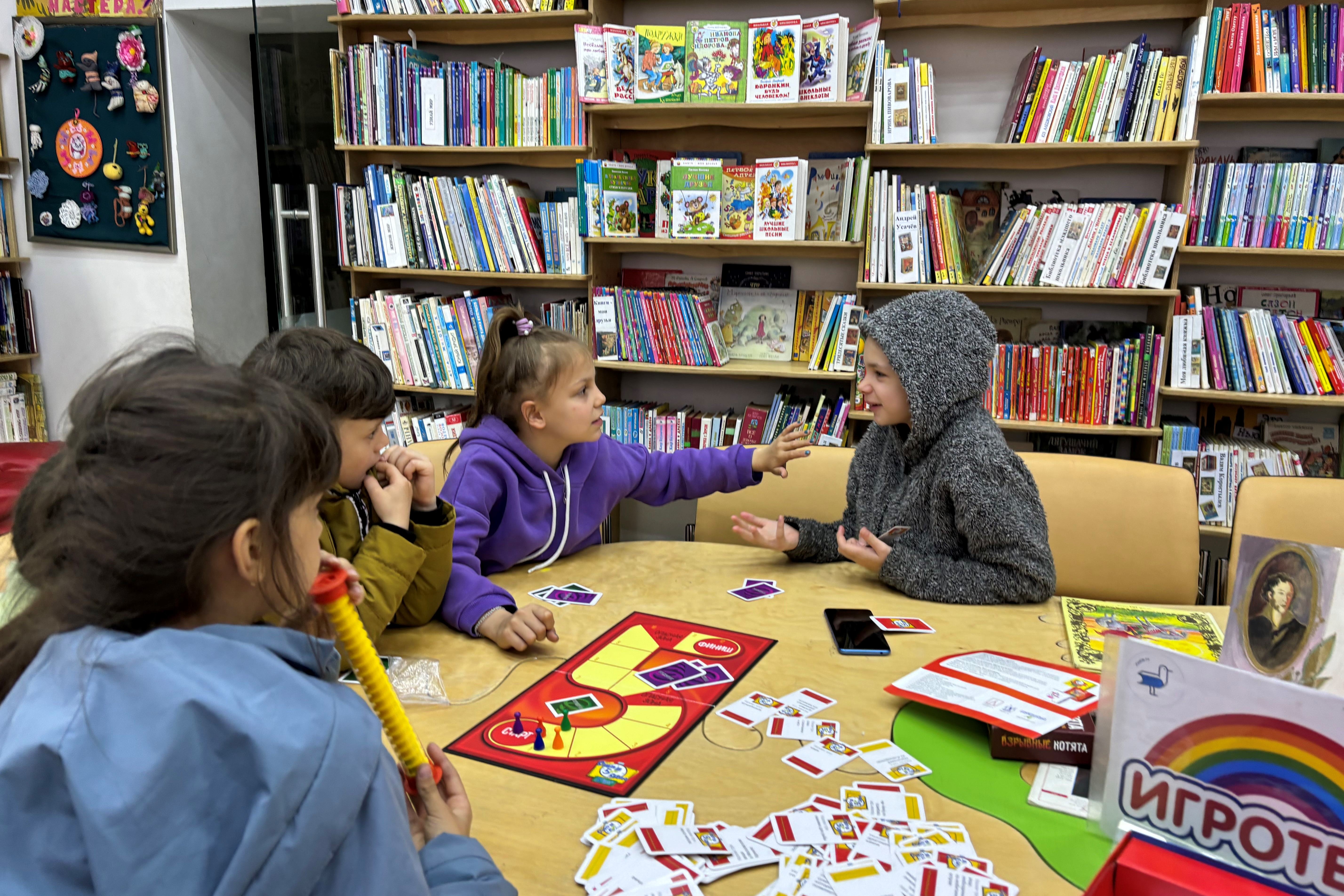 Ребятишки забегают в библиотеку в течение дня несколько раз, чтобы поиграть в самые разнообразные настольные игры. Им нравится играть в новую игру «Ответь за 5 секунд», «Взрывные котята», строить из «Деревяшек» башню. Очень любят «Морской бой». Еще дети играют в настольные игры по русским народным сказкам, а кто-то, удобно устроившись на пуфах, сидит и читает книги и журналы.