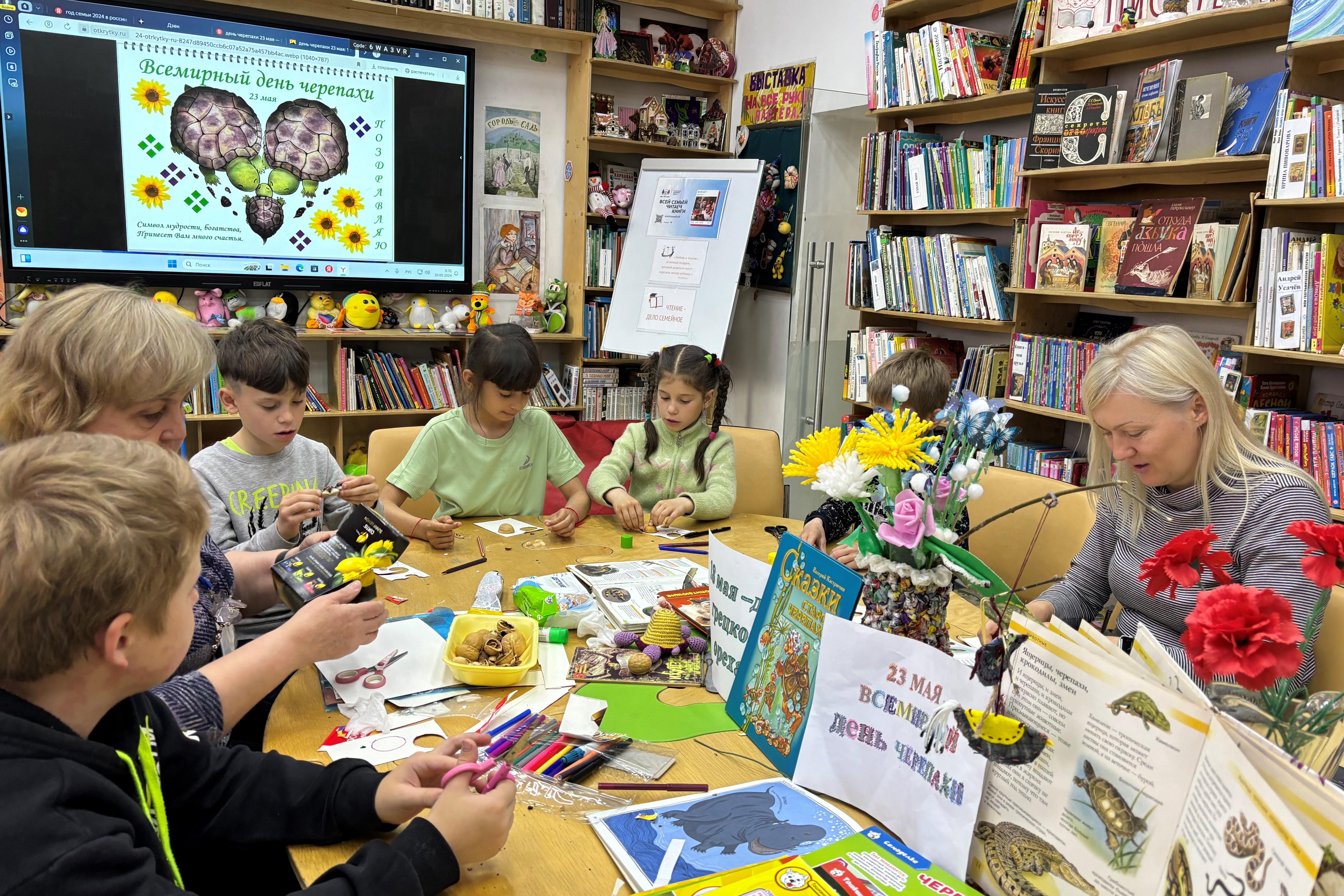 Как всегда, летом много детей приходит в библиотеку, чтобы помастерить. Мастерили и черепашку из грецкого ореха ко Дню черепахи, гусеничку — бабочку. В день юбилея Александра Сергеевича Пушкина читали его «Сказку о рыбаке и рыбке» и увлеченно из бумаги делали золотую рыбку.