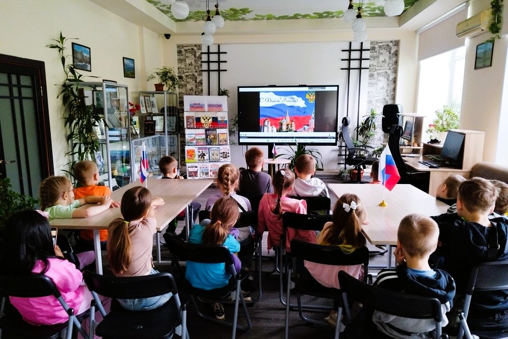 В преддверии праздника в библиотеке № 2 прошло мероприятие для воспитанников детского сада № 20 «Что мы Родиной зовем?». Ребятам рассказали, что Россия – это независимое государство, имеющее свою территорию, свой государственный язык, свои законы, своего всенародно выбранного Президента. Дошкольники активно отвечали на вопросы: как называется самый главный город страны, как зовут жителей нашей страны, вспомнили государственные символы России — флаг, герб, гимн, как называют человека, который любит свою Родину.