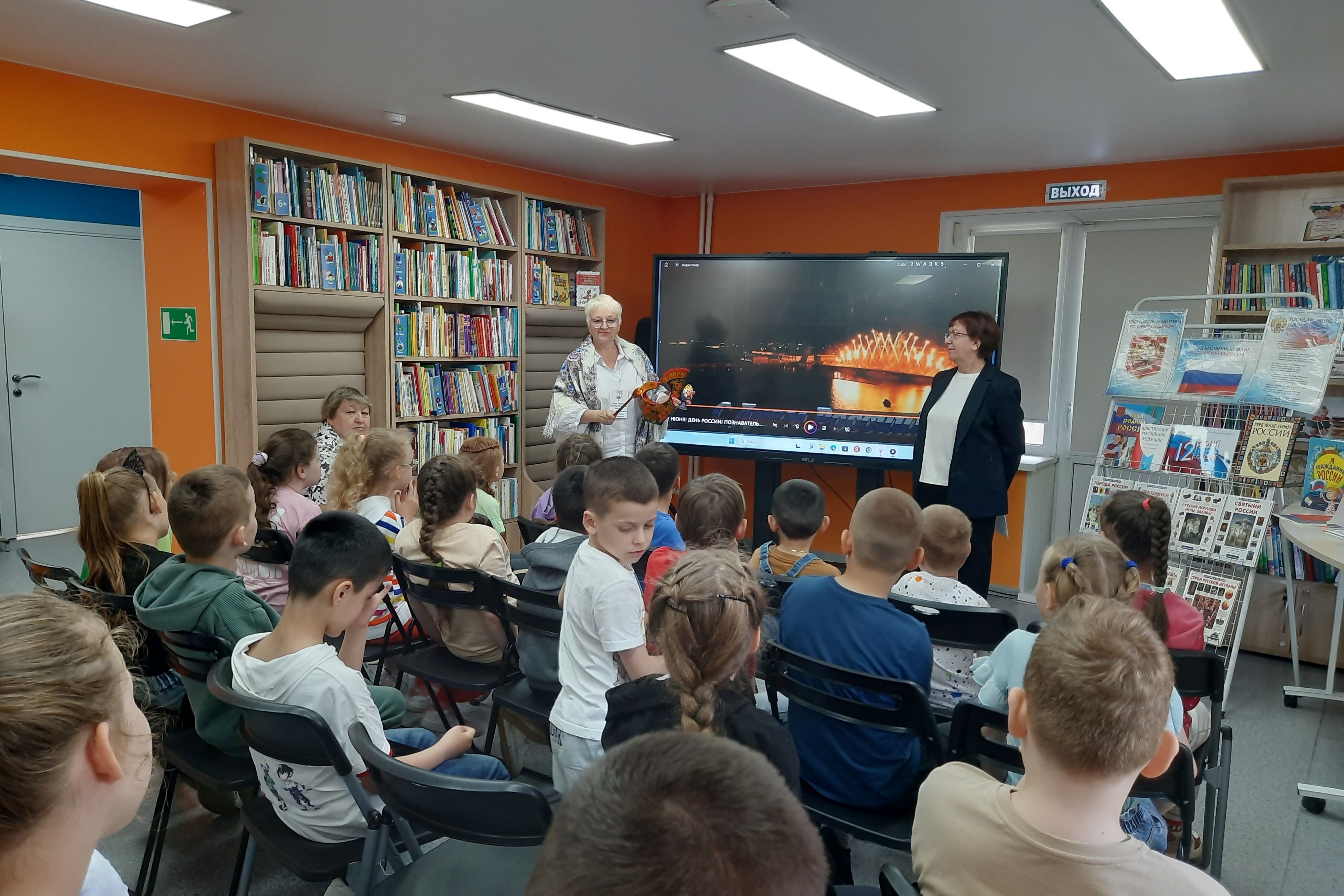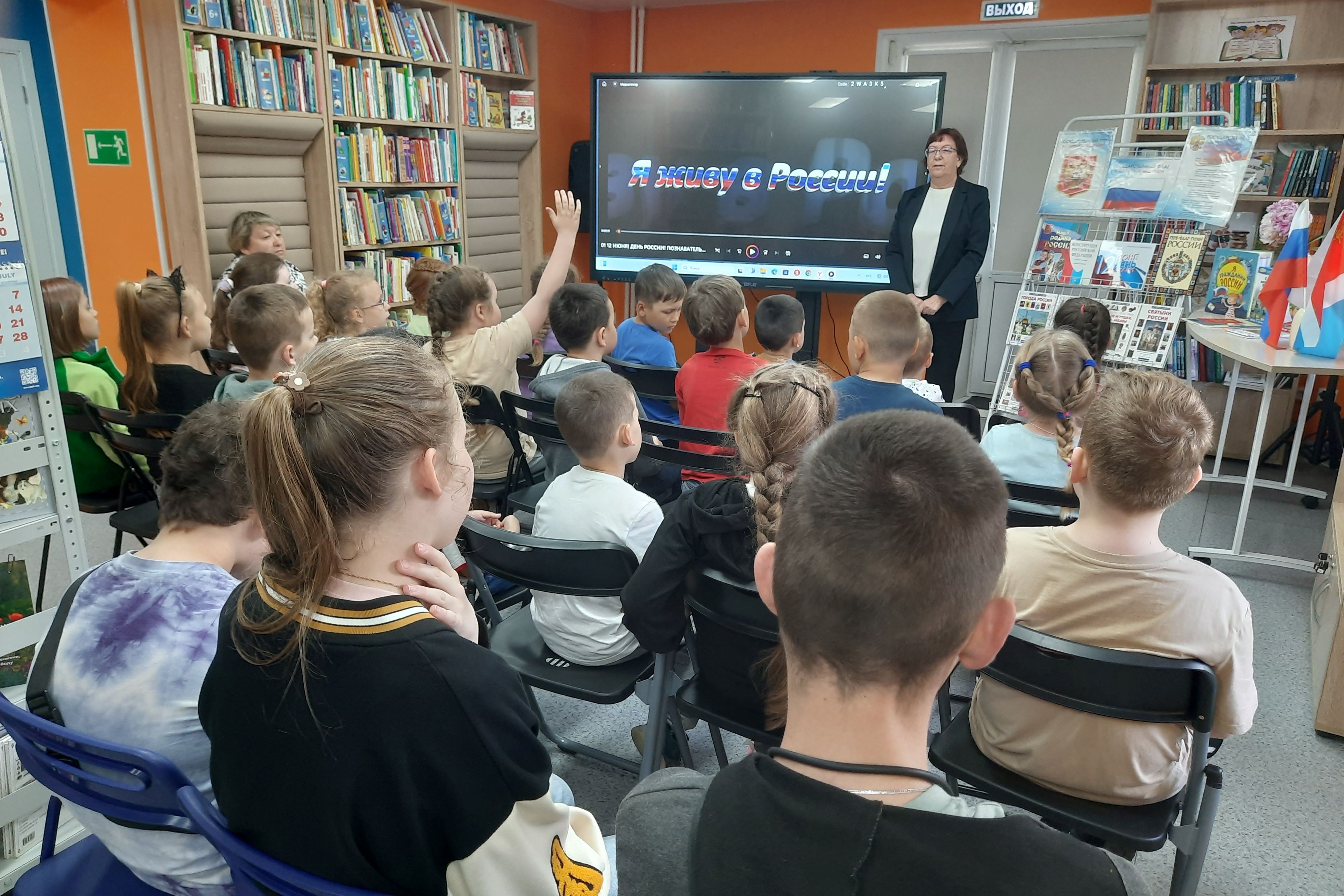 В библиотеке № 12 прошли различные мероприятия. Для четырёх групп ребят из пришкольных лагерей школы № 50 проведены исторические часы, посвященные празднованию Дня России. В ходе мероприятия звучали самые теплые и искренние слова о нашей Родине, о народе, который любит и гордится своей страной, звучали стихи о России. На книжной выставке «Я люблю тебя, Россия!» представлены книги о России: государственной символике, об истории России, о её разнообразной природе, городах и о великих людях нашей страны. Ребята узнали историю создания нашей Конституции, а также историю происхождения основных символов Российского государства — флага, герба и гимна. Ребята приняли участие в викторине «Наша Родина — Россия». В завершение мероприятия ребята посмотрели познавательный мультфильм «Горжусь тобой, моя Россия».
