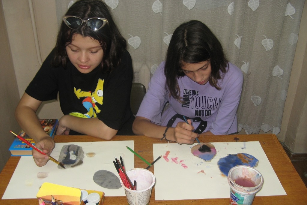 В библиотеке № 22 на одном из занятий ребятам представили прекрасную книгу Рогачевски-Ногаи С. «Расписываем камни», благодаря которой любой камень, валяющийся буквально под ногами, с помощью красок можно превратить в садовые фигурки, яркие сувениры или украшения для дома. Ребята попробовали и у них получились чудесные рисунки.