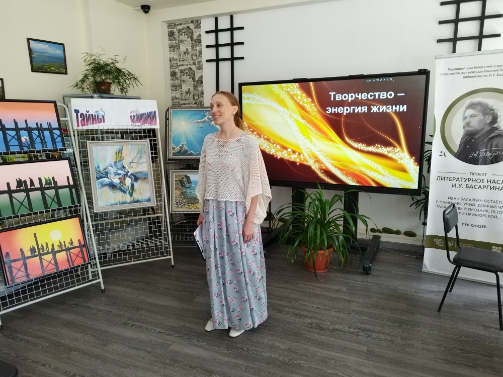 Стихи поэтессы и художницы Натальи Баенхаевой добавили глубины и эмоциональности вечеру. Наталья щедро делилась своими лучшими стихами, а её картины украшали зал, став прекрасным фоном для всех выступающих.