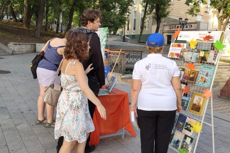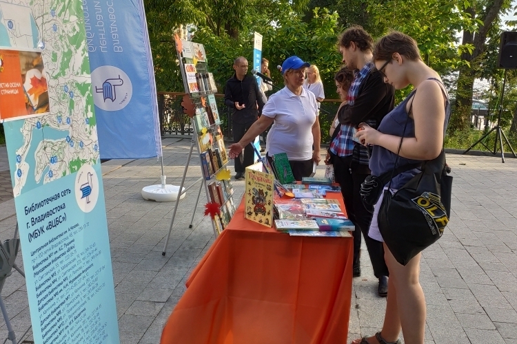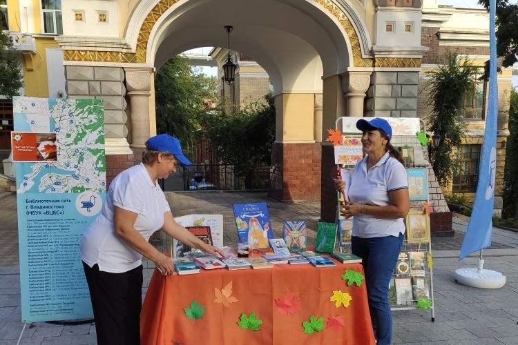 Библиотечная система Владивостока оформила площадку для горожан, на которой были представлены подборка книг по теме «Листая осени страницы». Горожанам была предоставлена возможность познакомиться с сетью муниципальных библиотек Владивостока и стать читателями.