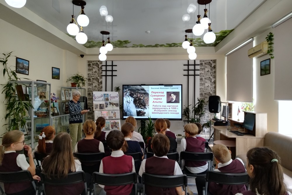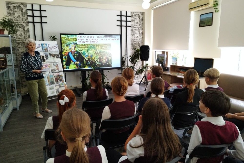 11 сентября в библиотеке им. И.У. Басаргина для учащихся 5 «Б» класса СОШ № 57 прошёл исторический час «Переход Суворова через Альпы». Рассказ об одном из величайших полководцев России Александре Васильевиче Суворове продолжает патриотическую тематику программы «Моё Отечество».