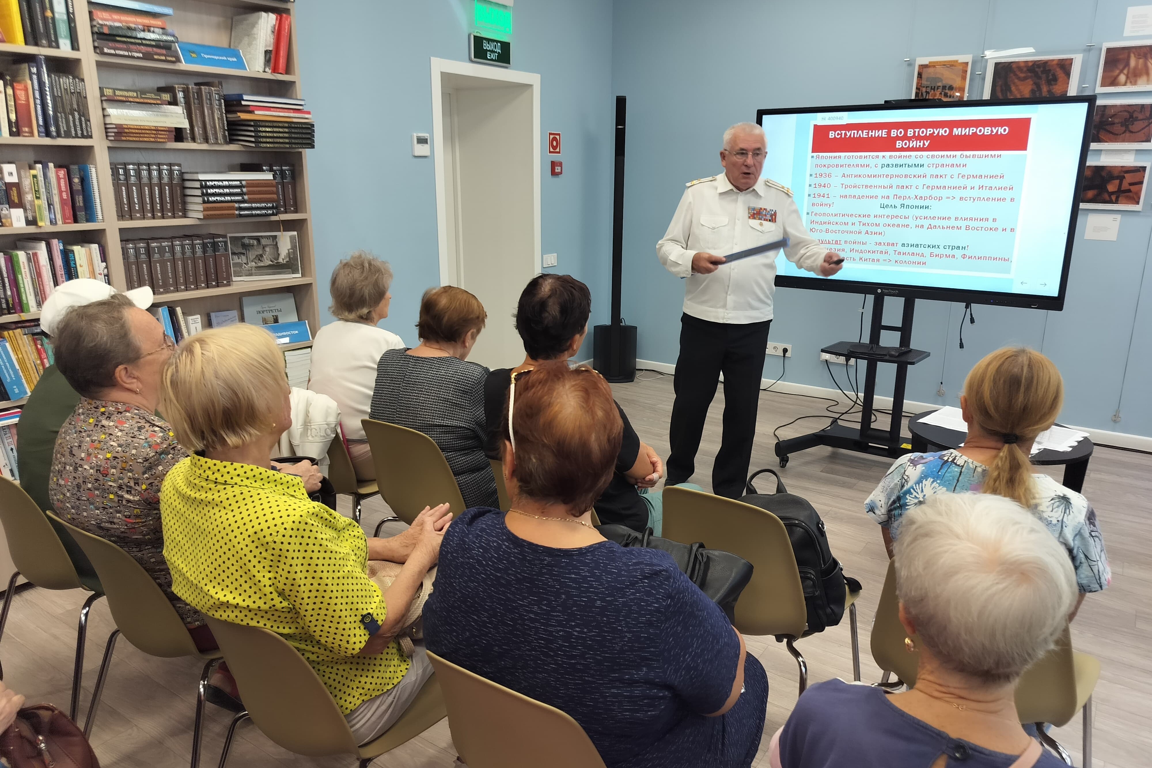 11 сентября в Центральной библиотеке им. А. Чехова состоялась лекция-беседа «Капитуляция Японии и окончание Второй мировой войны», про которую рассказал Анатолий Иванович Узаревич, председатель общероссийского профсоюза военнослужащих Приморской краевой организации ОПСВ, капитан 1 ранга в отставке, кавалер орденов «За службу Родине в ВС СССР 2 и 3 степени, член Совета Союза ветеранов Анголы.
