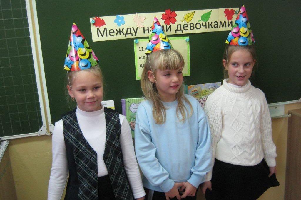 Сегодняшние девочки нашей страны, все-таки имеют все основания назвать себя счастливыми. С удовольствием дети рассказывали о своих увлечениях, кроме посещения школы, девочки учатся в музыкальной и художественной школах, ходят на спортивную гимнастику, танцы, в библиотеку. На импровизированной сцене бойко пели школьные частушки, рассказывали стихи. Одна из девочек – Дарина, принесла свою куколку и поведала ее историю, очень трогательную и душевную. Примерно тридцать лет назад дедушка привез эту куколку из Сингапура своей дочери, маме Дарины. Мама выросла и отдала игрушку дочке, теперь это маленькая куколка талисман семьи и самая лучшая подруга. О друзьях и подругах рассказывала и Таня Скворцова. Она прочитала книгу Юлии Симбирской «Здравствуй Таня!» и рассказала классу, что настоящая дружба, это там, где есть понимание, участие и порядочность.