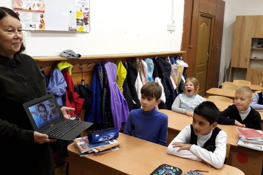 10 октября библиотека № 20 побывала в школе № 7 и провела для ребят из начальных классов беседу «Половина души у детей называется словом папа».