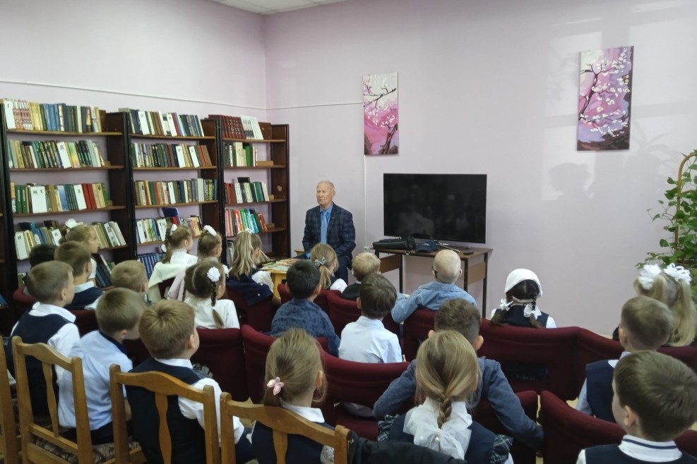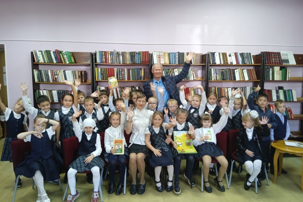 Сергей Михайлович читал первоклашкам стихи-загадки, беседовал с ними, рассказывал о своих достижениях: о победе в международном конкурсе «Будь человеком» и в организации, занимающейся фиксацией рекордов в РФ, Интеррекорд, с книгой «Веселый зоопарк». Она издана в печатном, аудио, тактильном, плакатном форматах и методом Брайля. А теперь еще и в панорамном формате, что не может не радовать юных читателей.