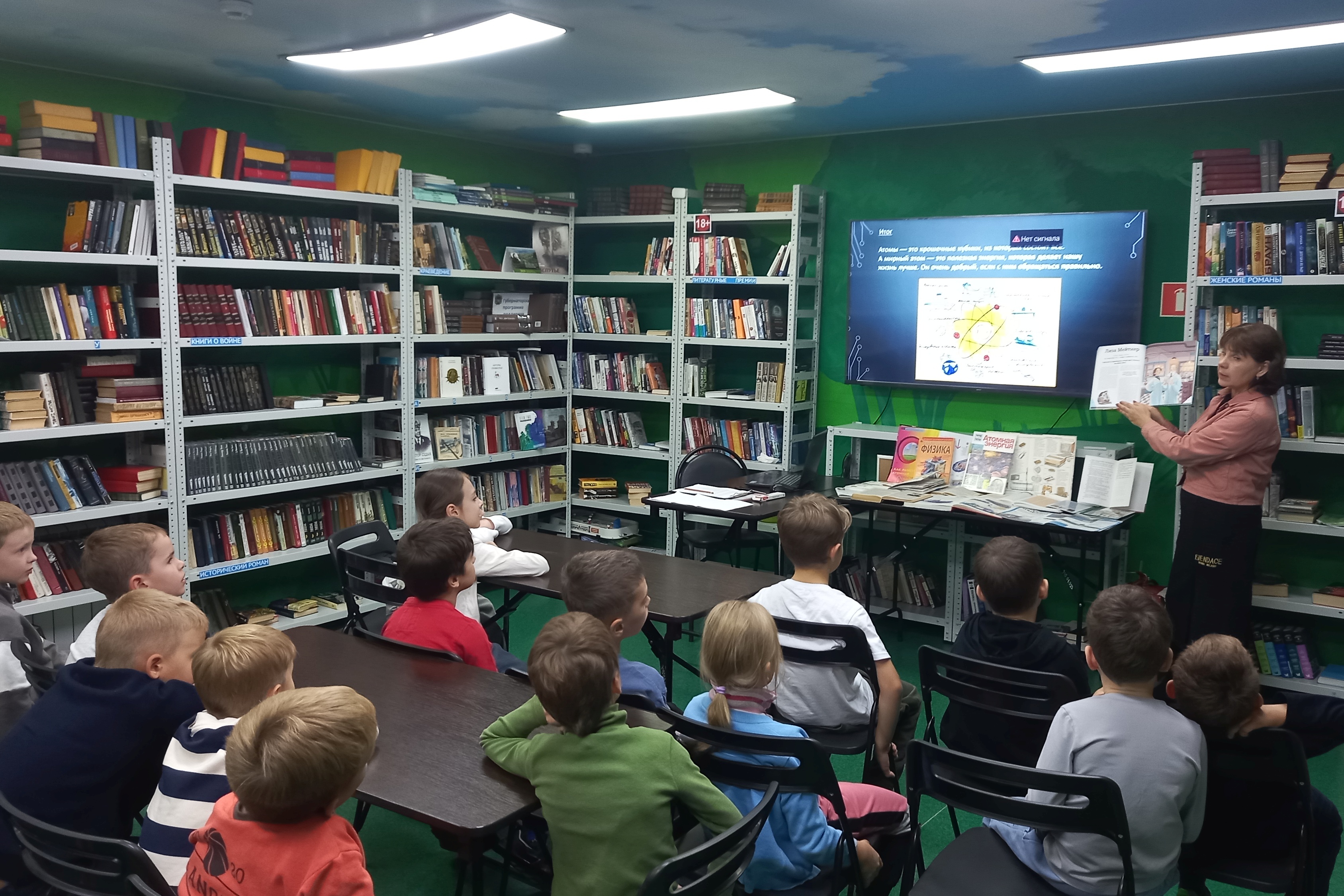 10 октября библиотека 17 (ул. Иртышская, 42) провела мероприятия к 80-летию атомной промышленности России. Познавательный час «Мирный атом» для 4а, 4б классов и познавательную беседу «Атомная энергия» для 2 класса воспитанников частной школы «Дарина».