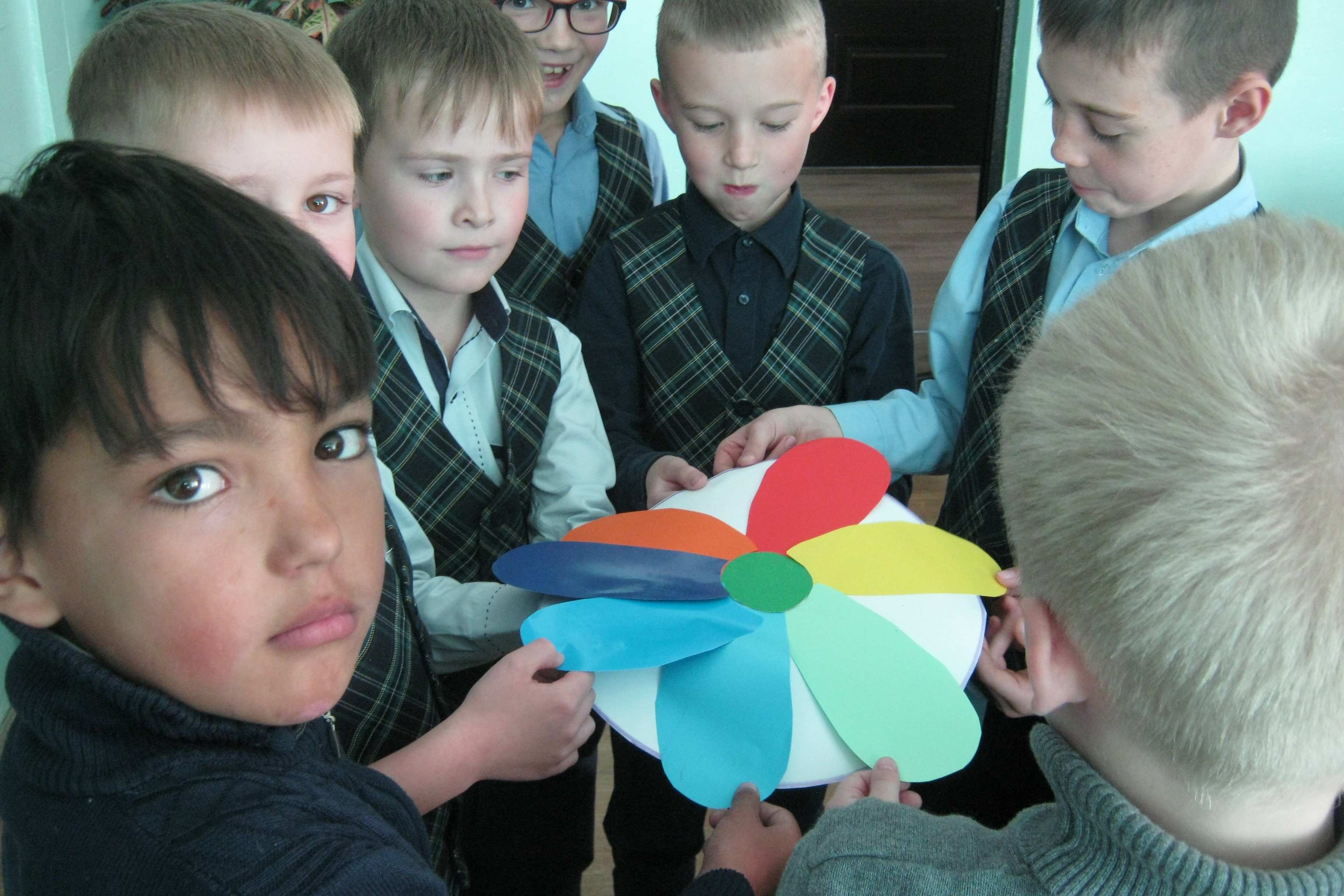 Закрепляли знания дети с помощью игры. В двух узелках: синий и голубой было спрятано «Добро» и «зло», найти нужный ответ очень просто, выбери просто цвет. И дети выбрали, в голубом узелке – добро, в синем – зло. И только одна девочка Кристина Новицкая, выбрала синий, как добро, объяснив свой выбор тем, что не всегда зло выбирает темное, скорее наоборот выбирает светлое, чтобы легче обмануть человека. И это правильный ответ. Поиграли в цветик-семицветик, при этом быстро догадались, почему семь цветов у цветка – по цвету радуги. А у радуги, как известно сияющий мост дружбы, а значит и добра. Каждый цвет отвечает за хорошие поступки, плохих нет. Красный – прекрасный, зеленый – хваленый, голубой – мировой.