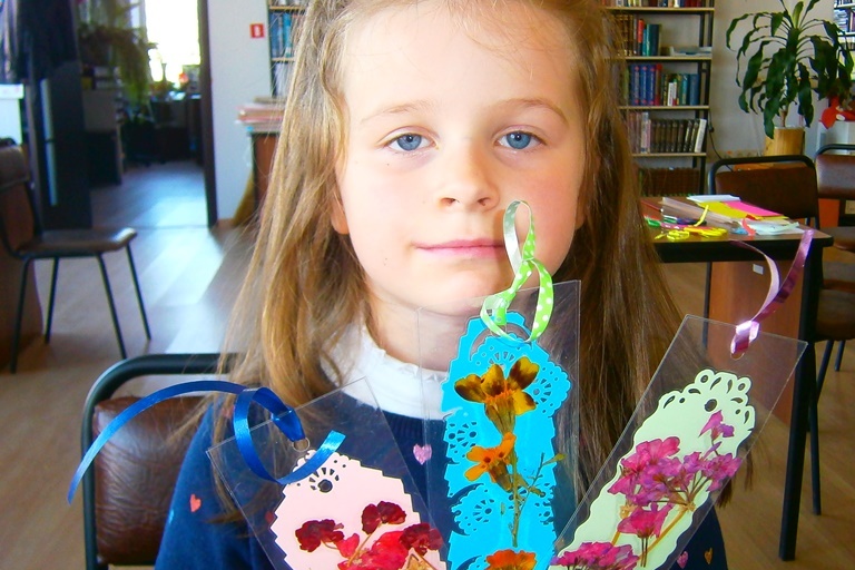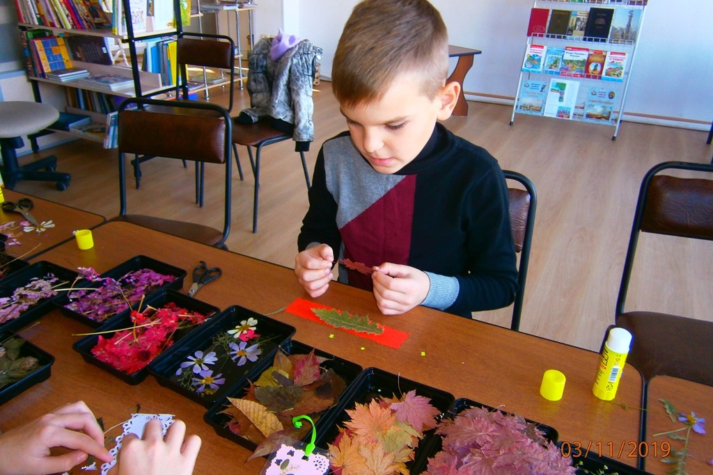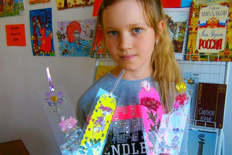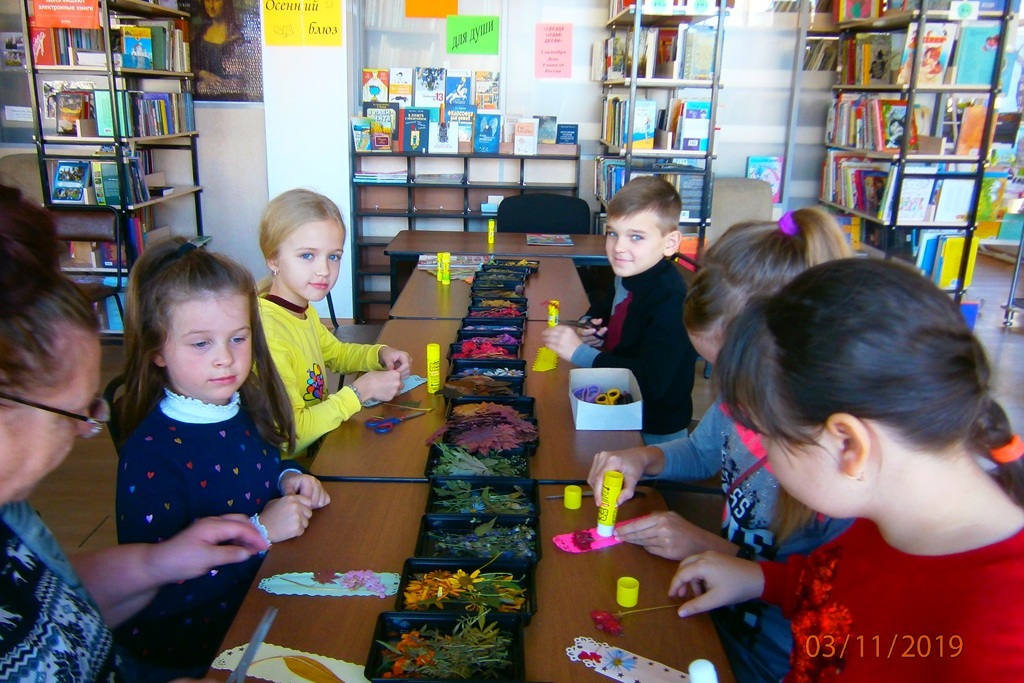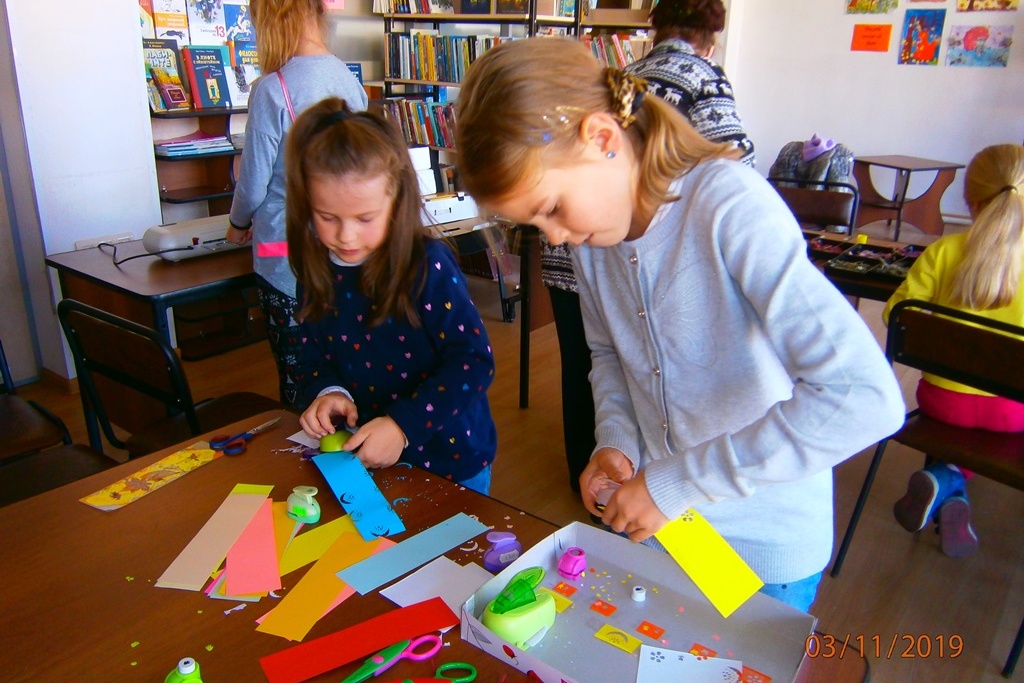 3 ноября библиотека №3 организовала мастер-класс по изготовлению закладок своим руками. Сначала дети посмотрели видео об истории книжной закладки, рассмотрели готовые (покупные) закладки. А затем приступили к творению своей личной помощницы для чтения. Материала для работы было много: цветная бумага и картон, но изюминкой мероприятия стал гербарий (засушенные цветы). Фигурный дырокол стал незаменимым помощником. Пришлось вспомнить названия цветов и когда они цветут. Вдохновение витало в воздухе, одной закладки оказалось маловато, и каждый сделал несколько. Все остались довольны процессом творения, заламинировали свои закладки и украсили их кисточками из лент.