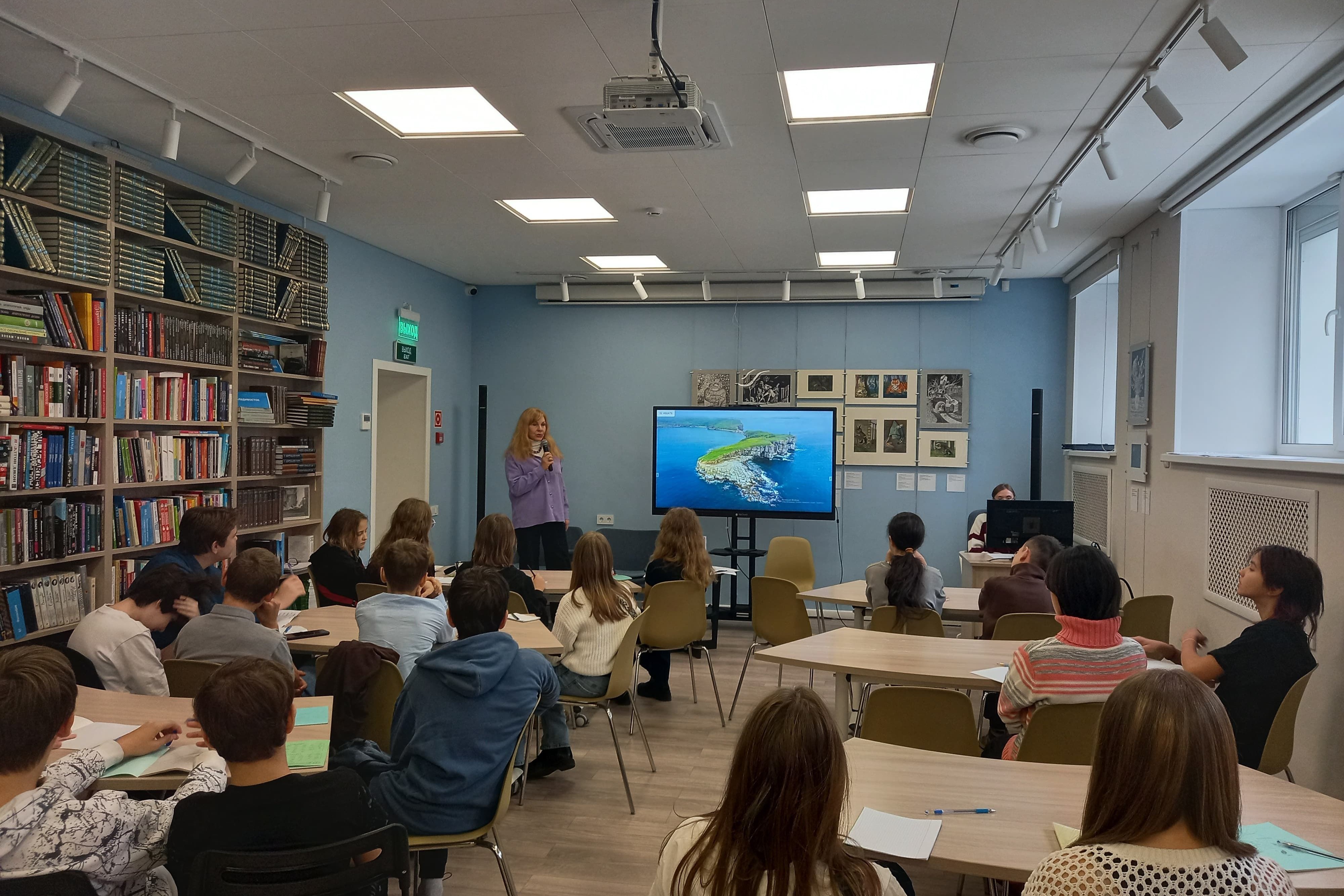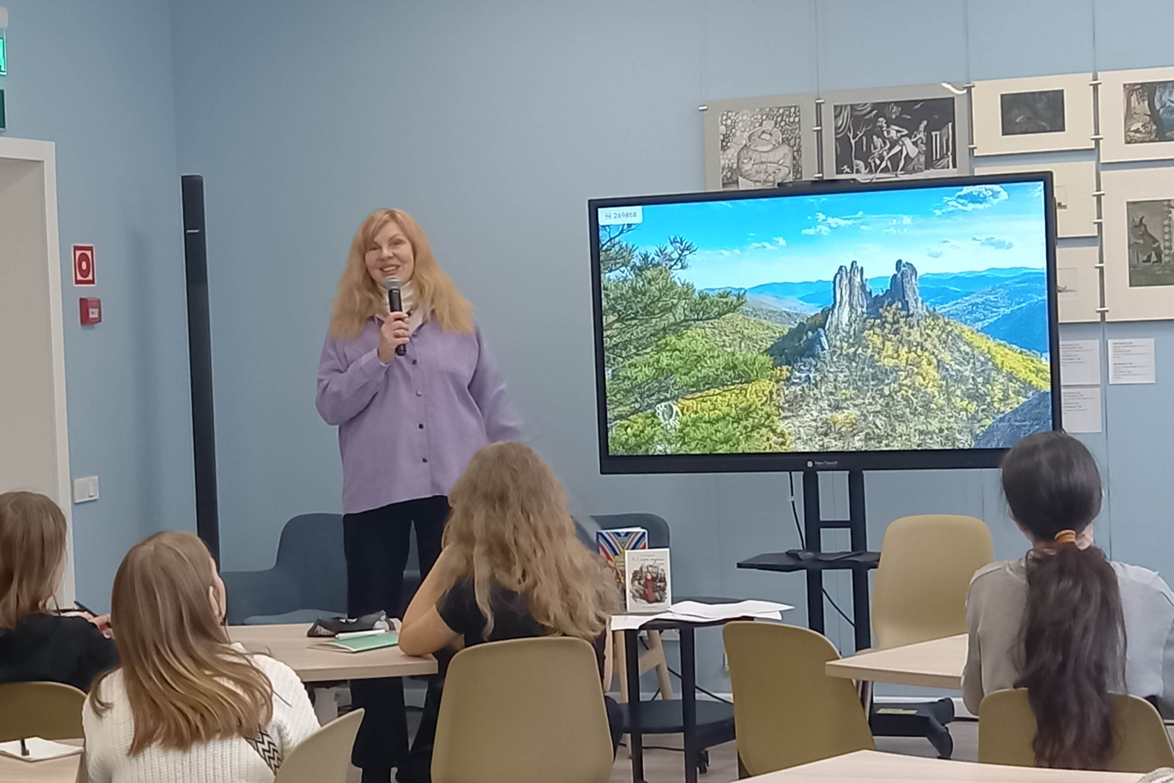 8 ноября в Центральной библиотеке им. А. Чехова в рамках проекта «Учебный день в библиотеке» состоялся необычный урок для учащихся седьмого класса СОШ № 51 г. Владивостока. Провела его известная приморская поэтесса, журналист, режиссер, автор книг, руководитель театральной студии «Алые паруса», автор-постановщик музыкально-поэтических спектаклей, Наталья Форикова. Тема урока: «Природа Приморья в поэзии».