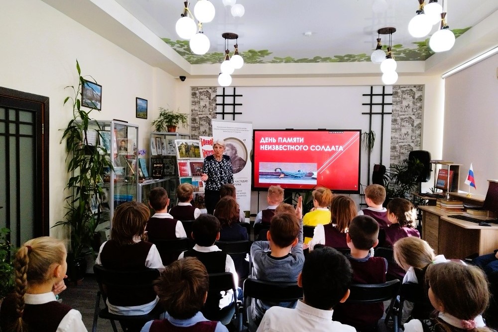 6 декабря библиотека №10 организовала мероприятие для учащихся частной школы «Доверие». На этом внеклассном занятии сотрудники библиотеки побеседовали с детьми о том, что они знают о Великой Отечественной войне и о родственниках, которые воевали у них. После этого рассказали о деятельности поисковых отрядах в нашей стране и о том, что, благодаря им памятная дата «День Неизвестного Солдата» в 2014 году указом Президента Российской Федерации была учреждена дата, посвященная подвигу Неизвестного Солдата. В завершении мероприятия в дружеской обстановке и с комментариями сотрудника библиотеки показали короткометражные видео ролики, снятые в Приморском крае о тех далеких событиях, которые мы всегда должны помнить.