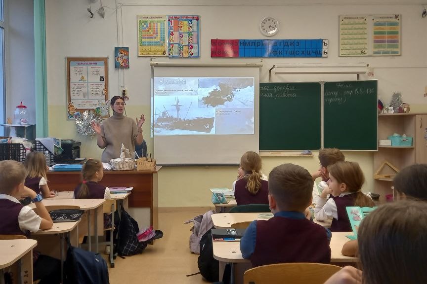 Библиотека № 1 имени А.С. Пушкина провела патриотический час «Свет подвига» с учениками 4 «В» класса МБОУ «Центр образования № 28 с углубленным изучением иностранных языков г. Владивостока». Школьники узнали о том, что первыми, кто был удостоен звания Героя советского союза, стали полярные летчики, спасшие терпящих бедствие пассажиров и членов экипажа парохода «Челюскин». Ребята с удовольствием выслушали эту беспримерную историю челюскинцев, узнали фамилии полярных летчиков-героев, спасших терпящих бедствие пассажиров и членов экипажа парохода «Челюскин». Особое внимание ребят привлекли истории Александра Покрышкина и Марины Плотниковой. Советский летчик, ас воздушного боя Александр Покрышкин совершил по официальным данным 650 боевых вылетов, 156 воздушных боев, 59 сбитых вражеских самолетов лично и 6 — в группе. Человек необычайной храбрости и отваги, патриот своей страны трижды был удостоен звания Героя советского союза. Трагичная история Марины Плотниковой, первой женщины — Герой Российской Федерации, также не оставила школьников равнодушными.