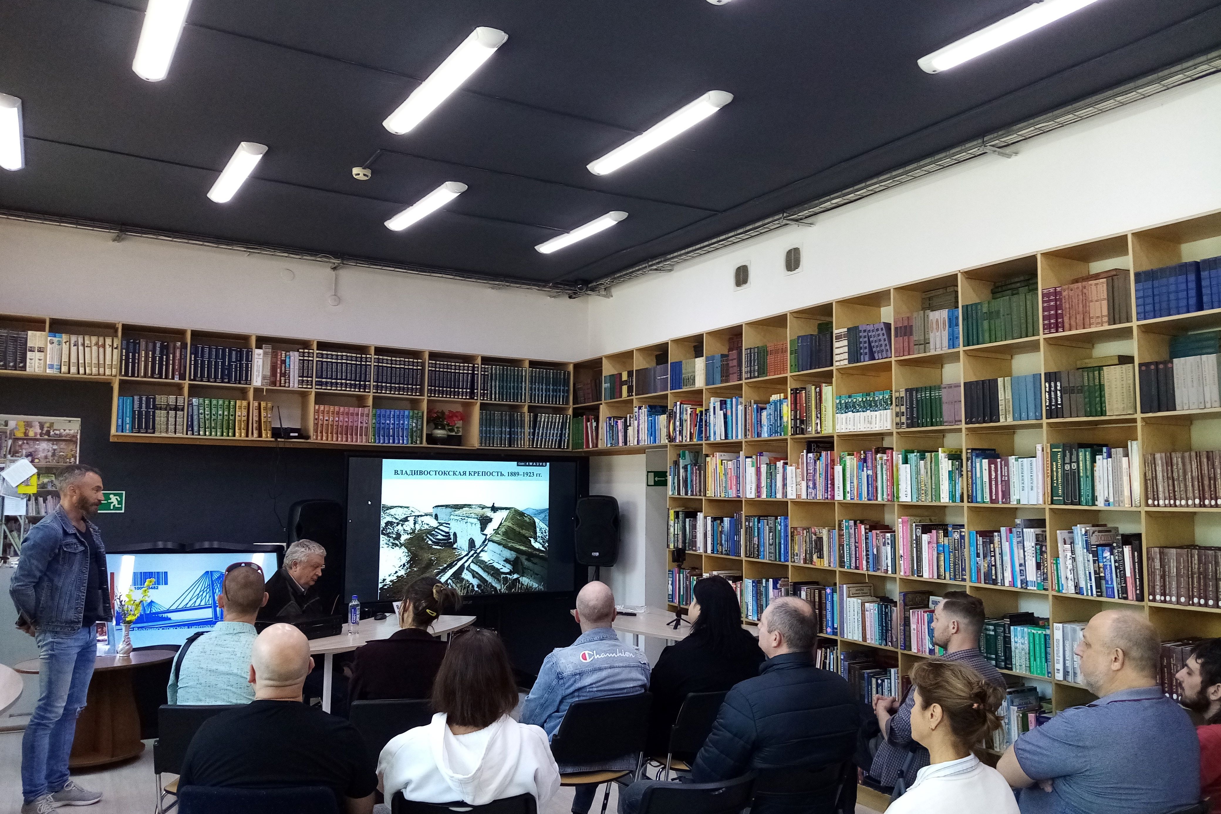 В апреле также в библиотеке им. А.С. Пушкина (БУК) состоялась лекция Виталия Козько «Владивостокская крепость сквозь призму времени». представил уникальную перспективу на судьбу Владивостокской крепости, поделился интересными фактами истории строительства и роли Владивостокской крепости в обеспечении безопасности восточных границ Российской империи и Советского Союза.