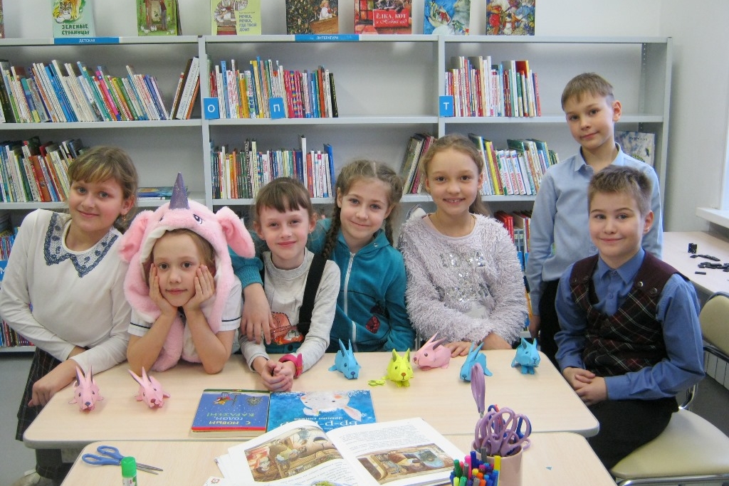 В библиотеке № 8 продолжаются творческие мастерские, знакомящие детей с «Библиотекой Деда Мороза». Прообразом для очередной поделки стал волшебный заяц из книги Натальи Евдокимовой «И настал Новый Год». Заяц — часто встречающийся персонаж новогодних историй, так что не одна только книга Натальи Евдокимовой перекочевала с полки стеллажа на стол на время творческой мастерской.
