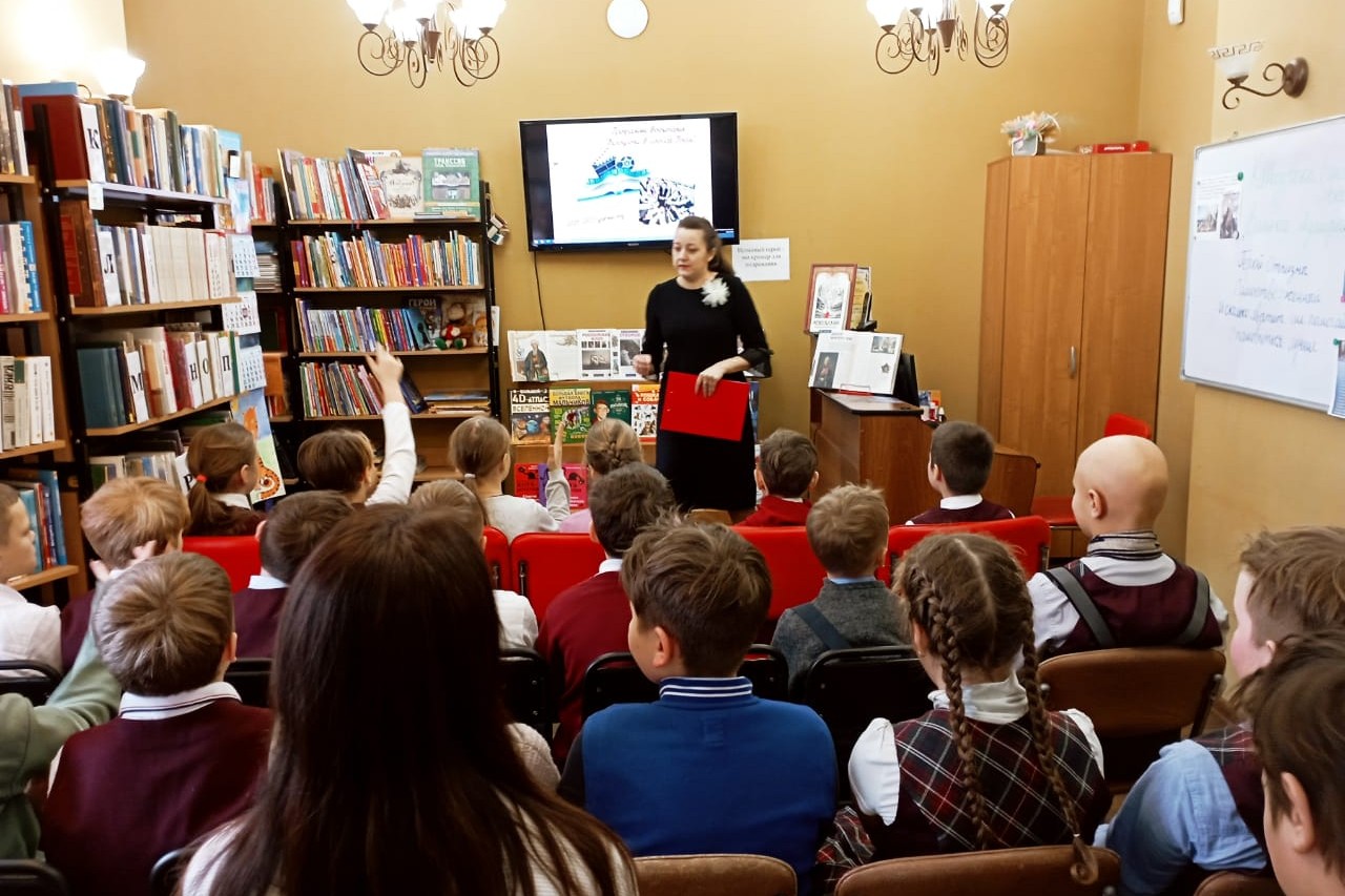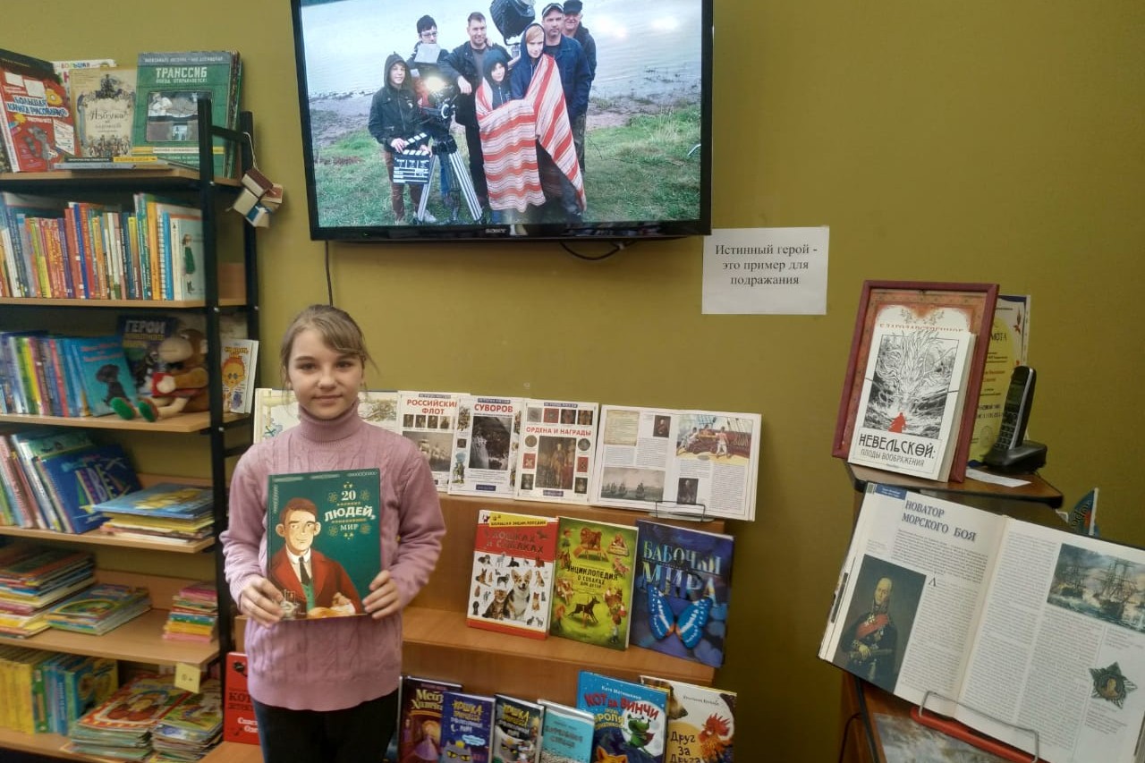 Четвероклассники школы № 22 смотрели в библиотека № 4 фильм «Ванька-адмирал», снятый при помощи ряда общероссийских общественных организаций и школ г. Рыбинска Ярославской области. И именно в Рыбинском районе, в селе Хопылево родился и вырос прославленный великий русский адмирал Фёдор Фёдорович Ушаков. А тема фильма звучит так: герой как пример для подражания.