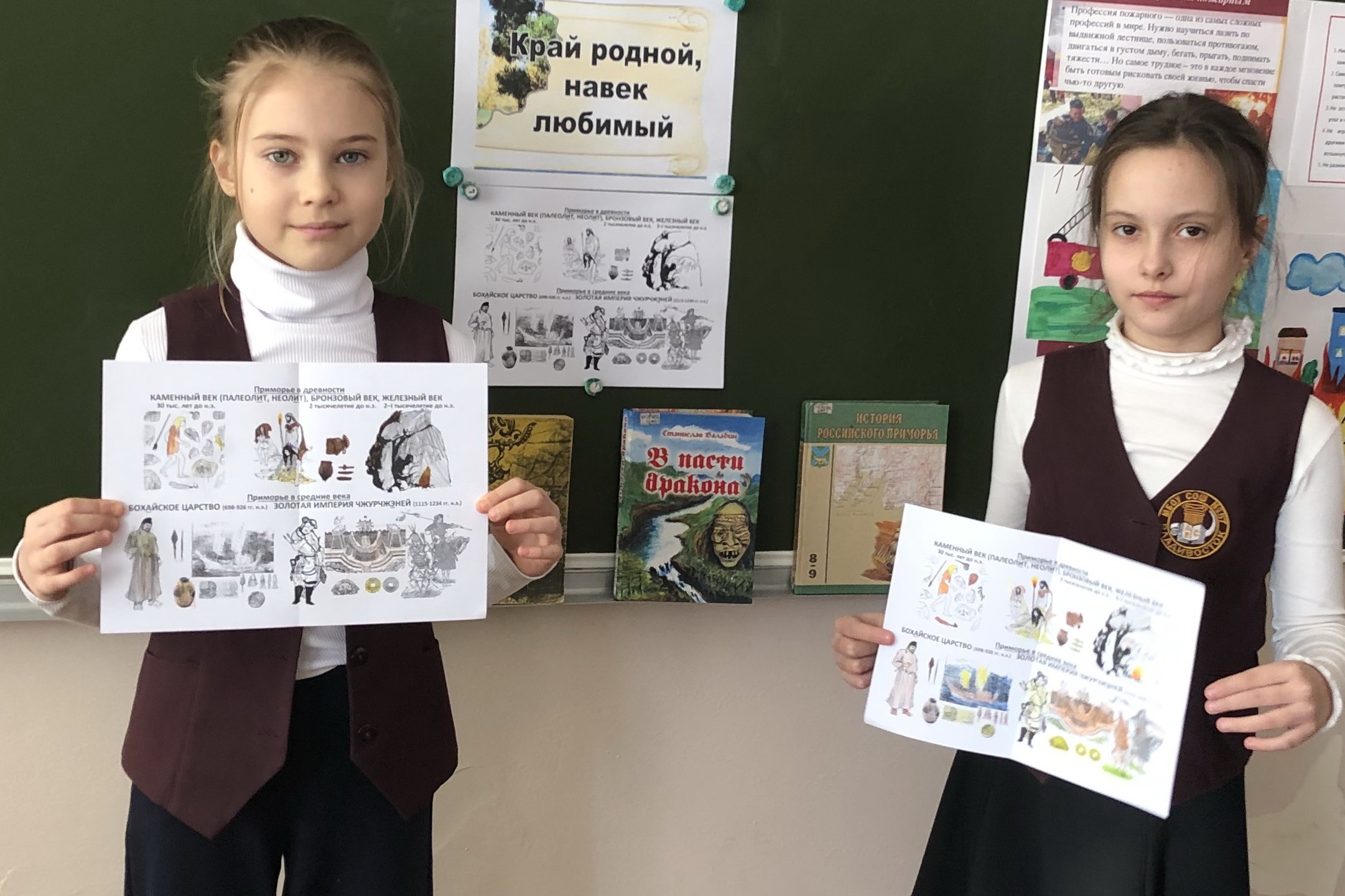 На литературно-краеведческом уроке, организованным библиотекой им. И.У. Басаргина, «Приморье в древности и средние века» 9 февраля ученики 2 «А» класса МБОУ «СОШ № 57» открыли долгосрочный проект «Страницы истории земли Приморской» (предусмотрены не только занятия по формированию элементарных представлений в этом направлении с привлечением краеведческой литературы, но и экскурсии в музеи) и совершили интересное и увлекательное путешествие в далекое прошлое родного края.