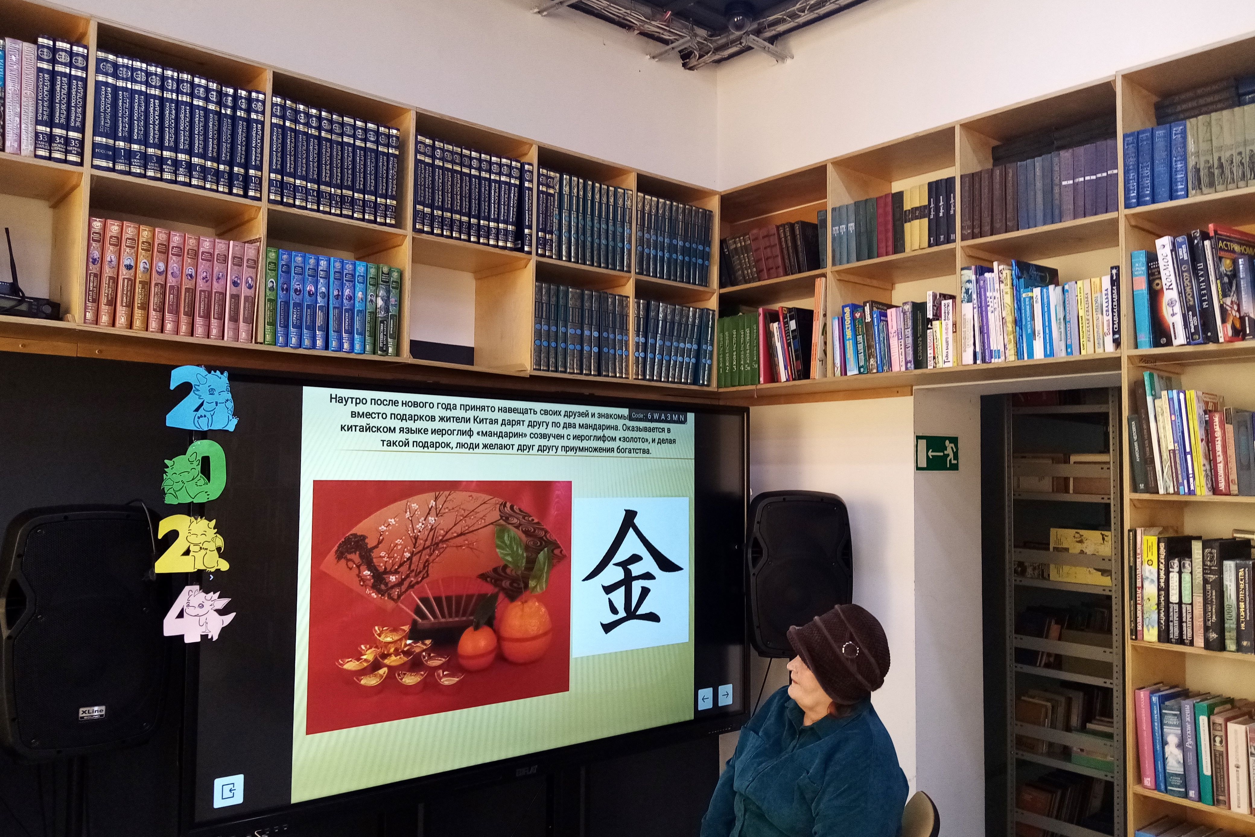 «Синь нянь куай лэ! Счастливого нового года!» — поздравила по-китайски ведущая участников клубного объединения «От сердца к сердцу» в библиотеке № 13.