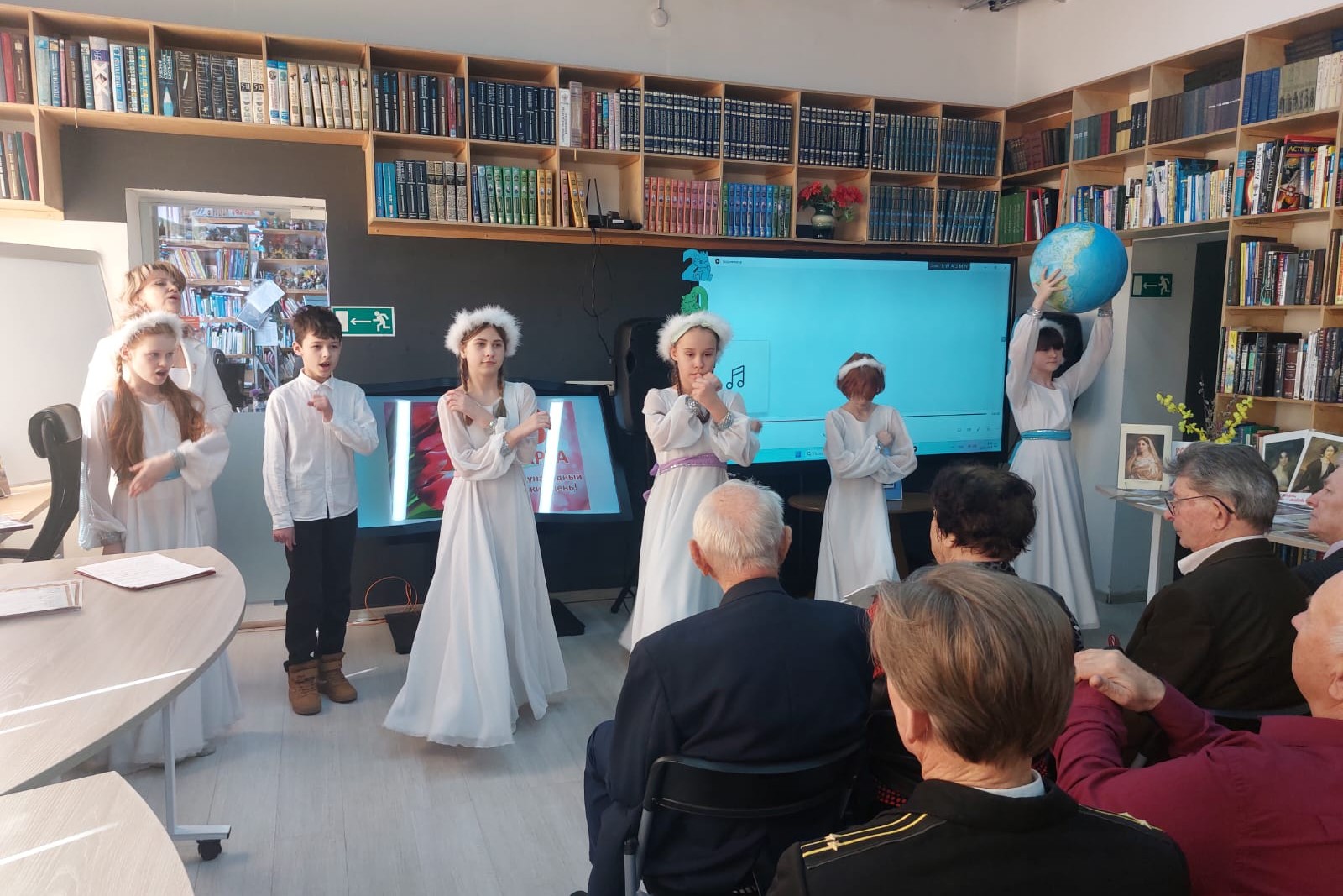 Поздравить ветеранов пришли учащиеся школ № 74, № 59, № 81. Порадовали собравшихся своими песнями ансамбль «Улыбка» и Демченко Юрий Петрович.