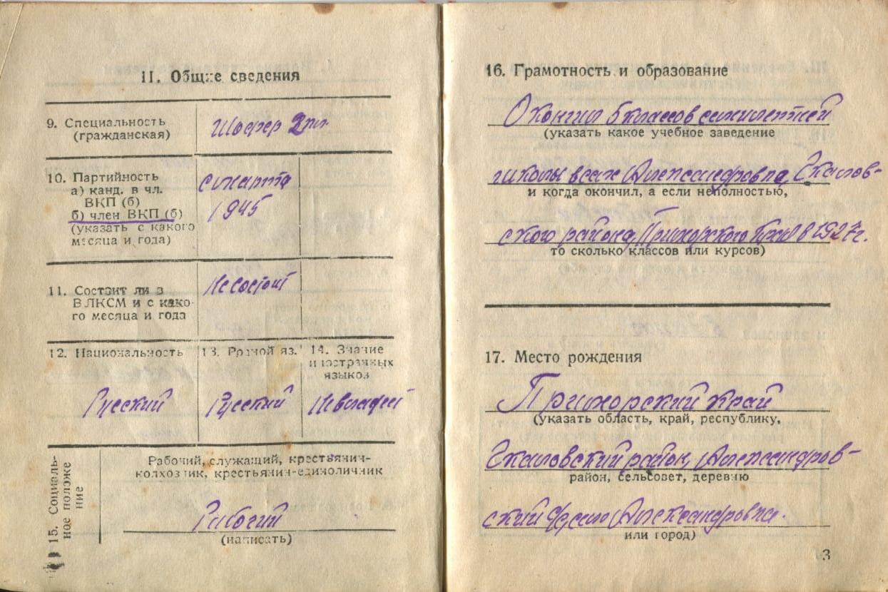 За всю войну ни одна пуля не зацепила его, но он был сильно контужен: наехал на мину и его вместе с машиной воздушной волной перевернуло и отбросило в сторону метров на сто. Он оглох и попал в госпиталь. Его посчитали погибшим, а домой прислали похоронку. И только спустя три месяца семья получила письмо от дедушки, что он жив.