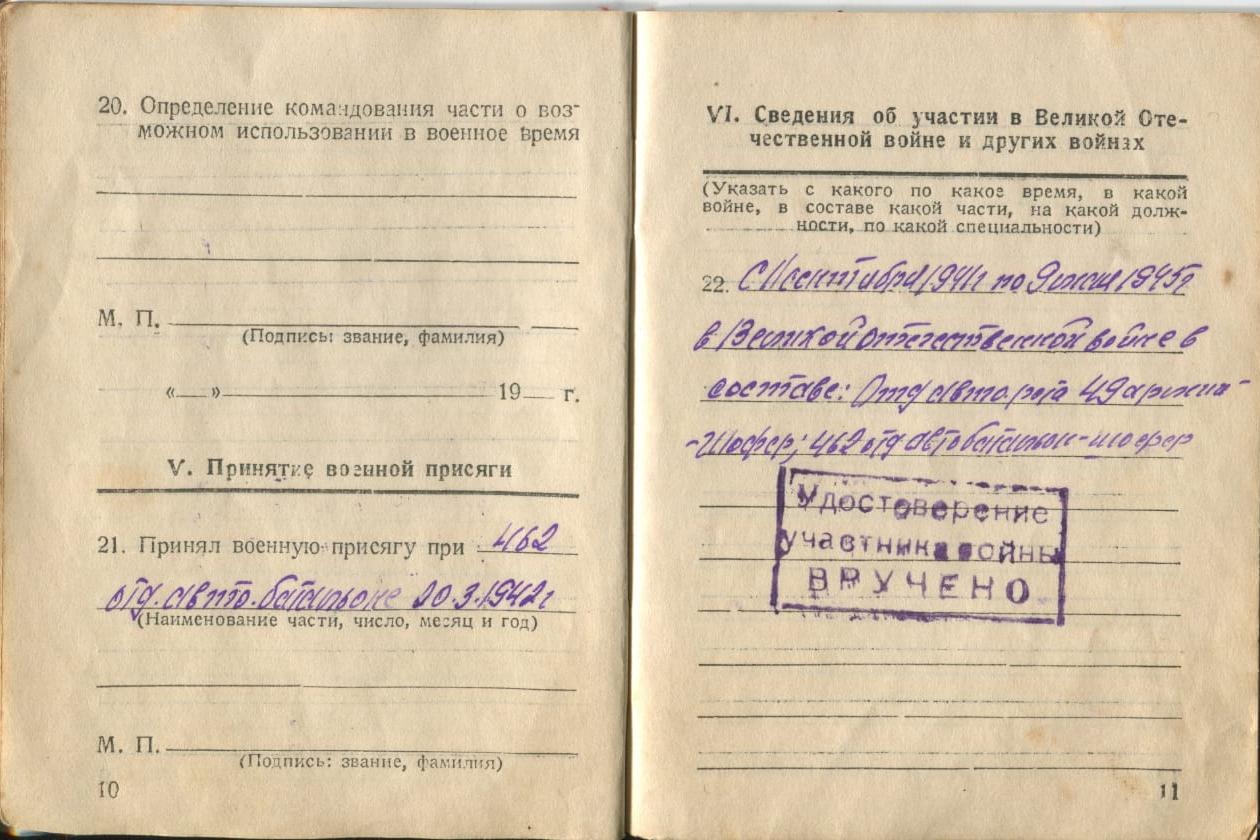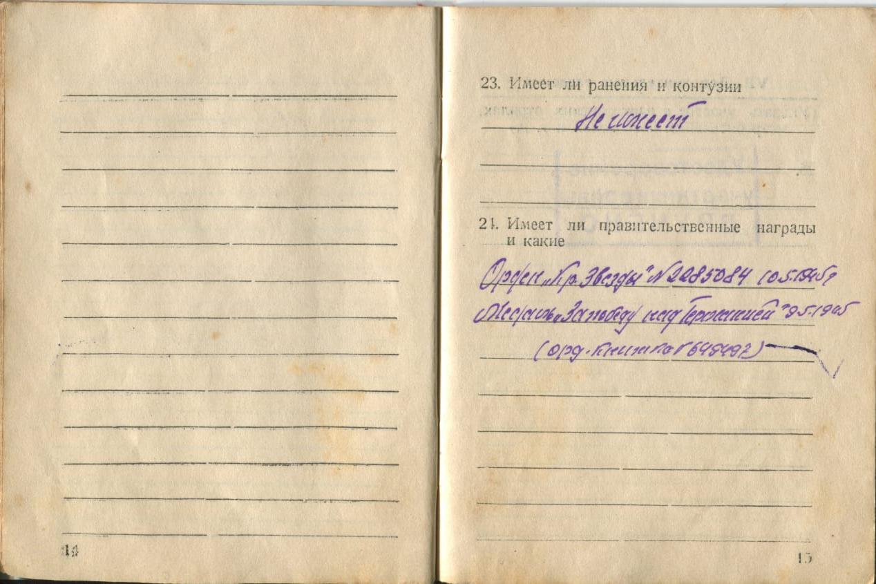 За всю войну ни одна пуля не зацепила его, но он был сильно контужен: наехал на мину и его вместе с машиной воздушной волной перевернуло и отбросило в сторону метров на сто. Он оглох и попал в госпиталь. Его посчитали погибшим, а домой прислали похоронку. И только спустя три месяца семья получила письмо от дедушки, что он жив.