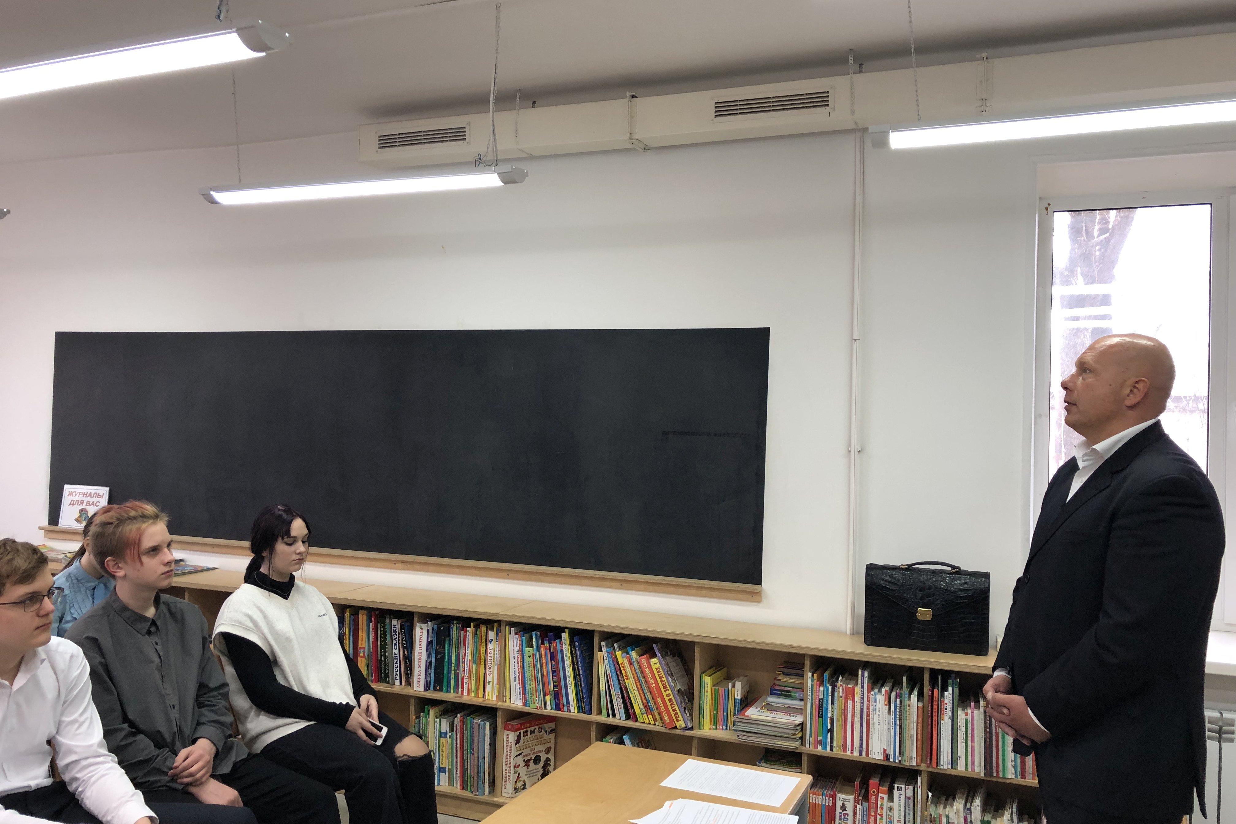 На встрече Алексей Борисович ответил на вопросы школьников. Напомним, это очередная встреча в цикле встреч для подростков «Эрудит».