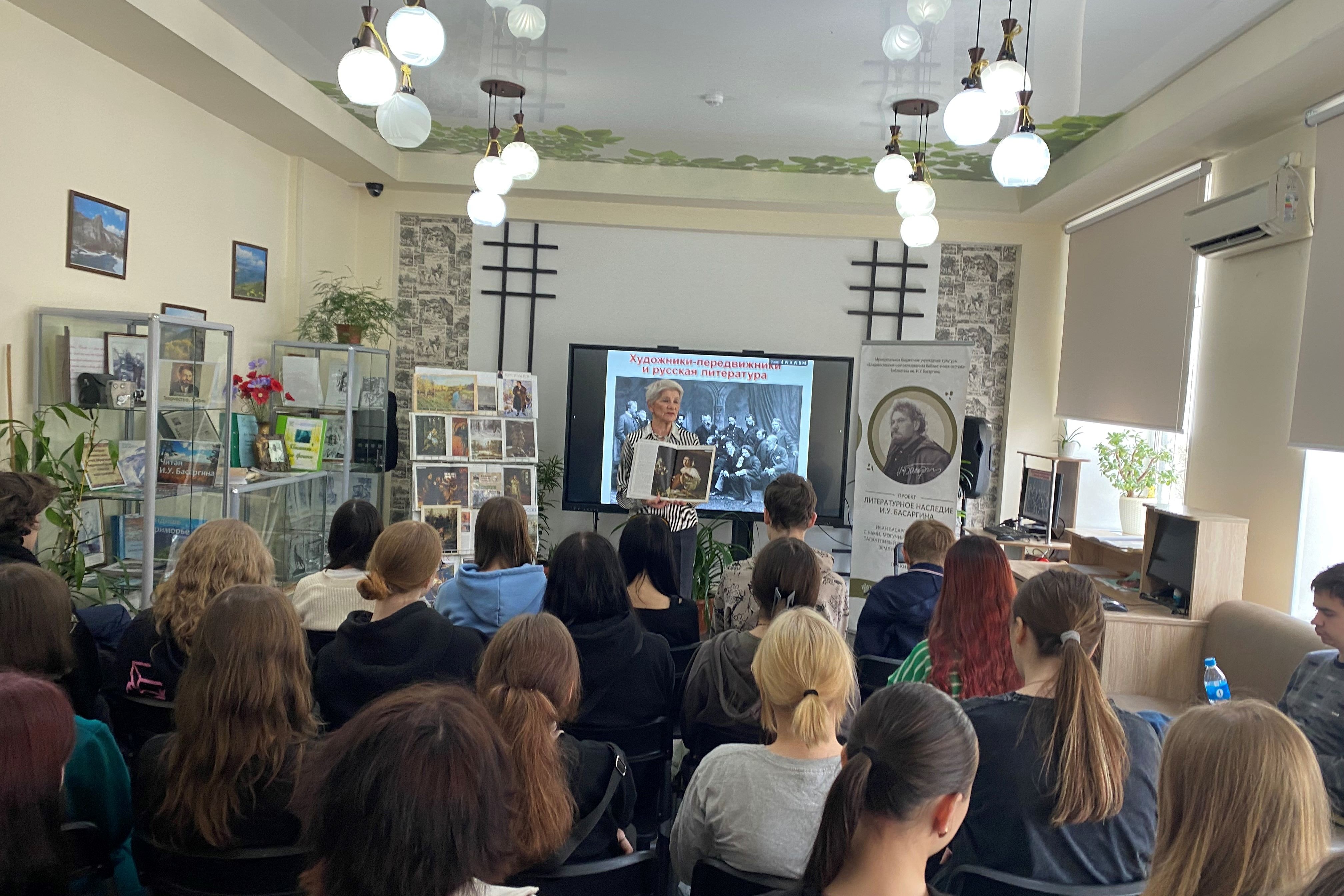 11 апреля библиотека №11 им. И.У. Басаргина организовала познавательное мероприятие о художниках-передвижниках для первокурсников гуманитарного-коммерческого колледжа. Рассматривая картины художников, которые в 1863 году устроили в Академии искусств, так называемый, «Бунт 14-ти», библиотекарь беседовала со студентами о том, с какой целю они бунтовали, против чего и какие цели ставили перед собой?