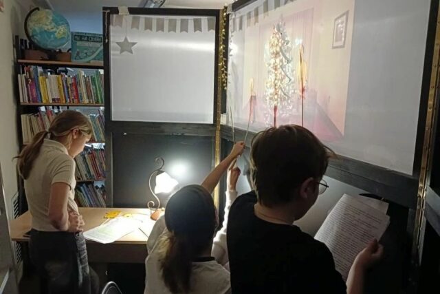 Дружная команда юных журналистов мастерит фигуры-героев спектакля, репетирует небольшие сцены, работает над актёрским мастерством и сценической речью, готовит реквизит и конечно, волнуется перед премьерой. Отметим, театр теней в библиотеке очень востребован, игра, чтение и творчество совмещаются в одном формате и становится местом встречи друзей, интересным видом досуга в библиотеке.