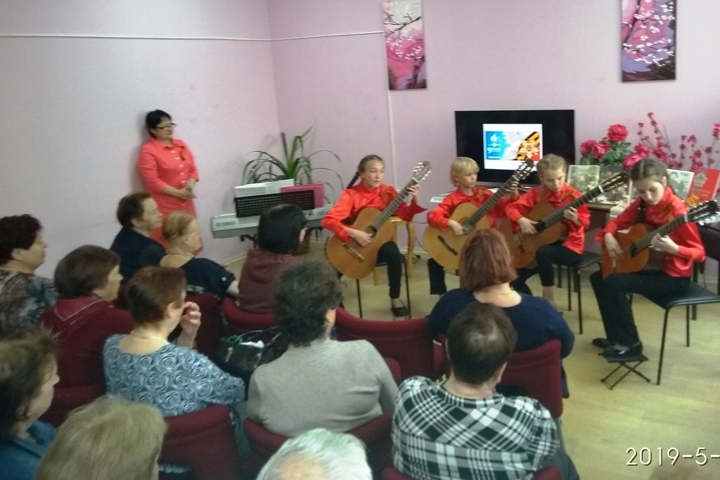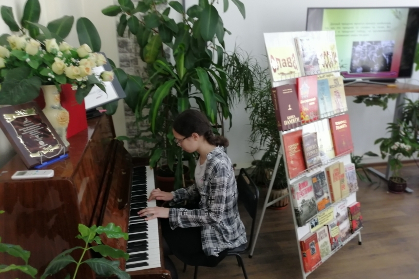 8 мая библиотека №13 организовала для Общества инвалидов Советского района праздник «Хочет мирно жить Россия». С новой программой, состоящей из песен военных лет, выступила концертная бригада детской музыкальной школы № 8 им. А.В. Воробьёва. Были исполнены инструментальные вариации, и невозможно было удержаться, чтобы не подпеть всем присутствующим известные песни «Смуглянка», «Алёша», «Тёмная ночь», «Катюша».